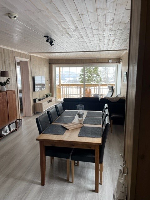 La ubicación es ideal con acceso de entrada y salida de esquí, por lo que puedes disfrutar de acceso inmediato a las pistas. Además, el Skarsnutene Hotel está a poca distancia, donde encontrarás todas las instalaciones necesarias y podrás disfrutar de comodidades adicionales. Te encantará la espectacular vista de las montañas desde esa terraza y desde el comedor. Es el lugar perfecto para disfrutar de tu café por la mañana o admirar las hermosas montañas después de un día activo en las pistas o en los senderos de fondo.