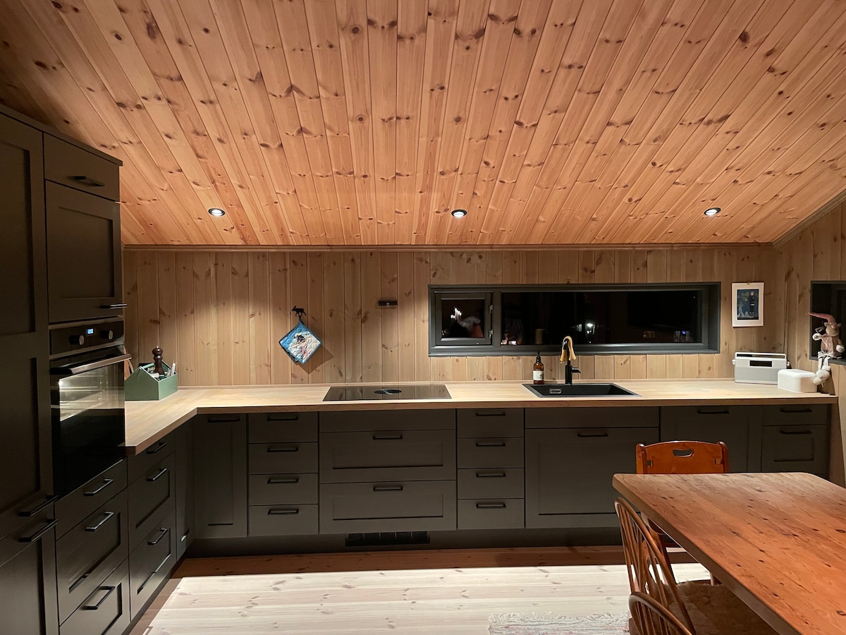 This is a modern, bright, and cozy cabin on one level, with 3 (4 bedrooms), 8 beds, and everything you need for a pleasant stay in the mountains. Two of the bedrooms have fold-down desks - perfect for workation. The modern fireplace will provide both comfort and warmth after a long day in the fresh mountain air. Electricity (ex. EV charging) included in the rent. The cabin is new, from 2022.