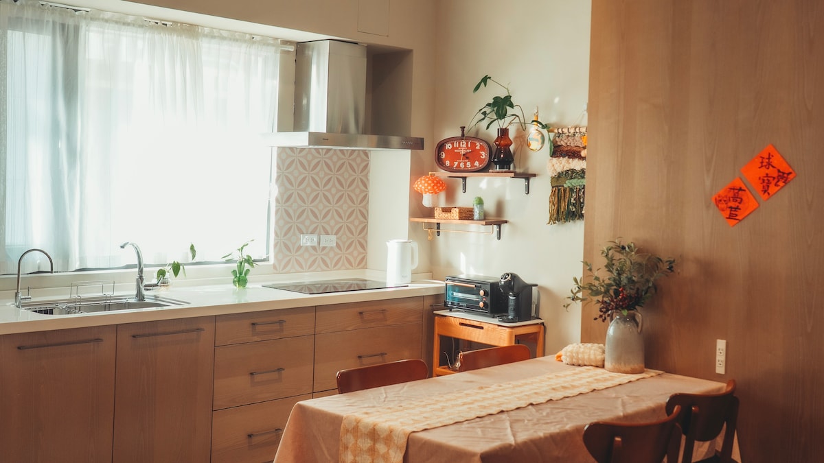 El edificio Fuxiao está ubicado en un edificio de apartamentos de 6 pisos con ascensor, cerca de la antigua de Hengchun, junto a un centro comercial y un mercado, y es fácil de estacionar. El apartamento está cerca de Starbucks y McDonald 's en la carretera provincial, ya sea que vayas a Kenting Street o a Manchuria Jialesui, es muy conveniente viajar de norte a sur. El apartamento tiene un gran balcón en la parte delantera y trasera, el espacio es luminoso y espacioso, la sala de estar tiene una gran ventana del suelo al techo frente a Hengchun Guanshan (oeste) y un pequeño balcón abierto al aire libre, donde se puede ver la puesta de sol. La cocina y el comedor dan a Chinuiling (este) y tienen un gran balcón interior (lavandería y secadero), una suite (con baño), dos habitaciones elegantes, un baño compartido y una cocina y comedor totalmente equipados. El apartamento está situado en el sexto piso de un edificio con ascensor. El apartamento cuenta con TV, aire acondicionado y wifi, además de una lavadora. Es adecuado para huéspedes que busquen un alquiler de larga duración. El espacio verde general es cómodo y ofrece un lugar de vacaciones tranquilo.