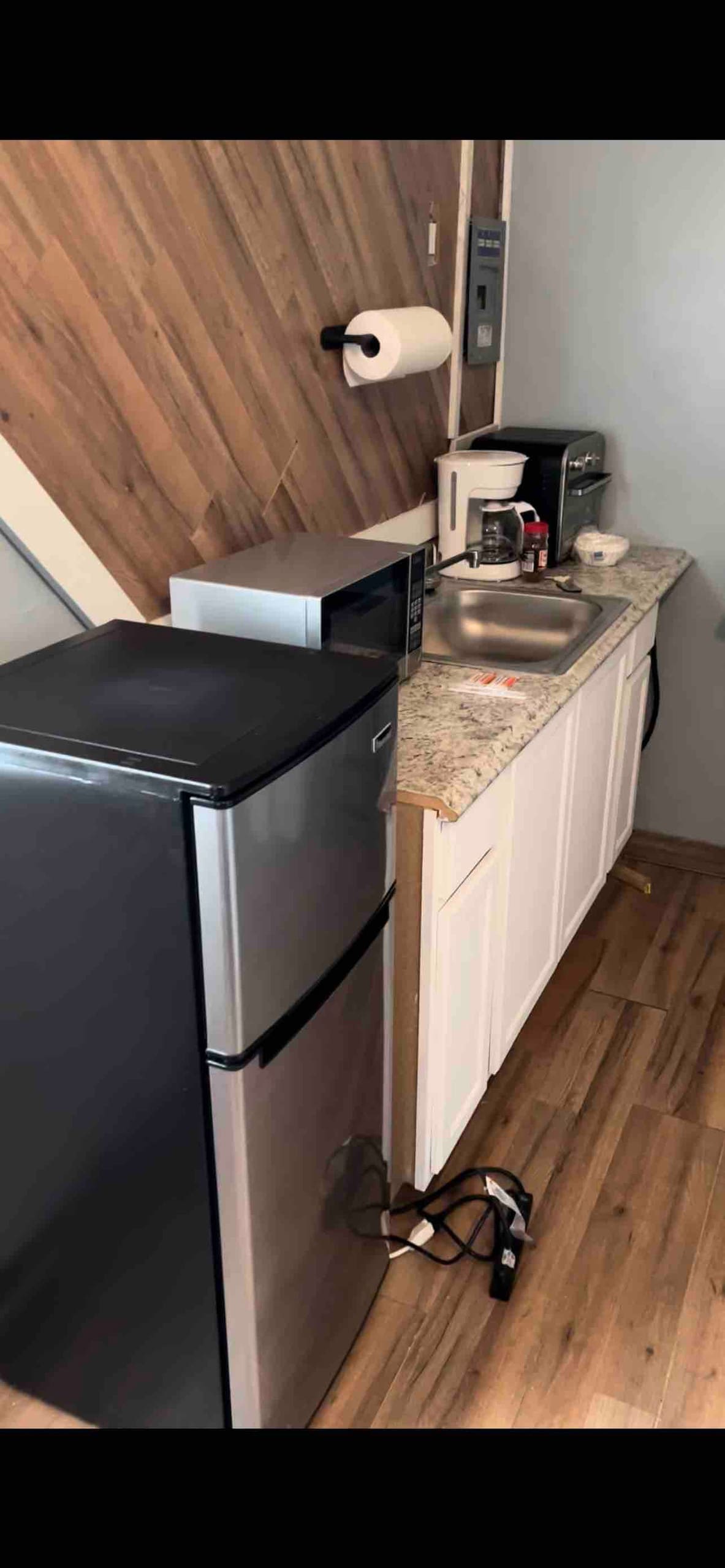 Casa de huéspedes pequeña y tranquila para llamar a casa lejos de casa. Tiene un sofá cama de tamaño completo, baño con inodoro y ducha, una pequeña zona de cocina con freidora de aire, nevera y microondas. (Sin estufa). Televisión de 42pulgadas y wifi. La casa de huéspedes está a unos 30 metros o más en mi patio trasero. La comunidad es tranquila y pacífica. El estacionamiento está disponible en la calle.
