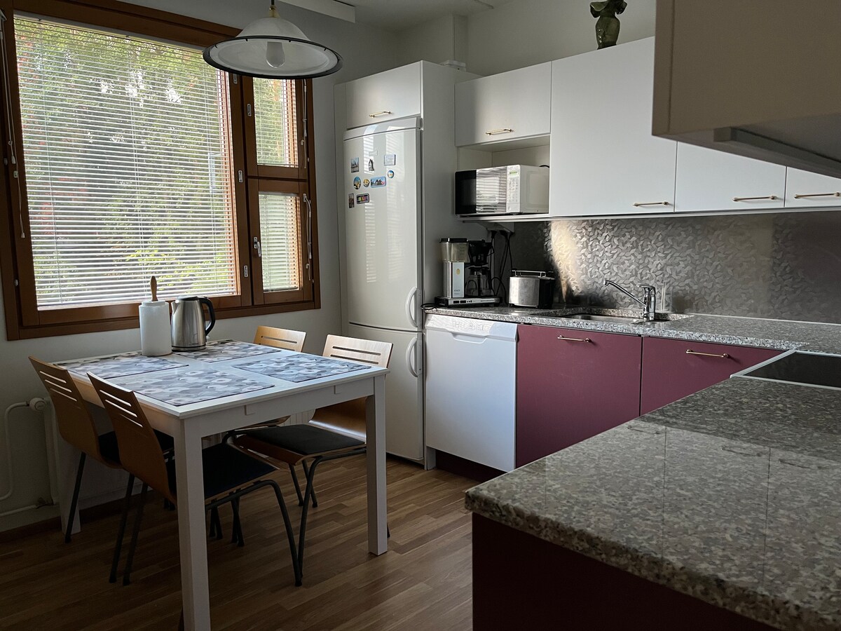 Apartamento tipo estudio tranquilo y acogedor en la planta superior de una antigua casa de director, con entrada propia. El apartamento es ideal para invitados a eventos, viajeros de negocios y cualquier persona que necesite un alojamiento acogedor en un entorno tranquilo. La entrada privada y el aparcamiento facilitan su funcionamiento. El apartamento está a solo unos 10 minutos a pie del Centro de Exposiciones y Deportes de Tampere. Los autobuses 30 y 32 pasan por el centro de la ciudad de Tampere, y el tiempo de viaje es de unos 15 minutos.