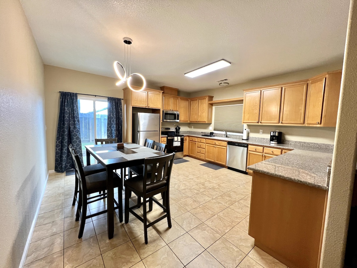El LUGAR acogedor de Oakdale es una gran parada en tu camino a las Sierras, Yosemite o si estás en la ciudad visitando a familiares y amigos. El uso completo de un hogar acogedor para relajarse incluye barbacoa, Hulu y WIFI. ¡Nuevo aspecto fresco con pisos nuevos en toda la casa, sábanas y muebles nuevos! Una mesa de ping Ping en el garaje se suma a la diversión durante tu estadía. ¡Y una piscina! ¡La valla de seguridad de la piscina y la puerta de cierre autónoma con pestillo de seguridad permiten a los padres relajarse en el patio sin ninguna preocupación!