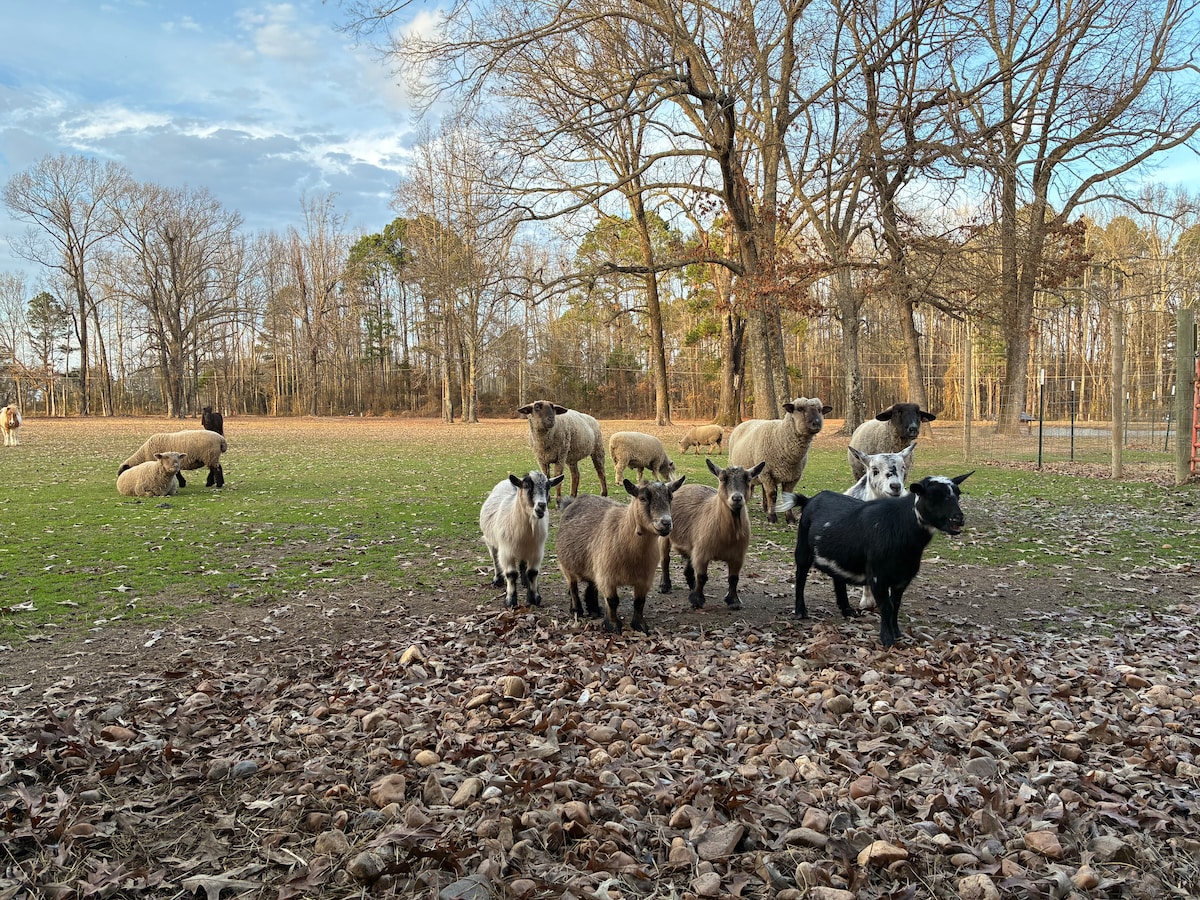 Si te gusta que te reciban ovejas amistosas y curiosas, ¡este es el lugar ideal para ti! Bienvenido a nuestra pequeña granja, nos encanta que los huéspedes se sientan como en casa en nuestra pequeña casa de campo. Siéntate en el porche delantero con una taza de café mientras ves pastar a las ovejas, cabras y caballos. ¡Siéntate en el porche trasero por la noche durante el verano y observa las hermosas luciérnagas! Este es un lugar para relajarse y desconectar del ajetreo y el bullicio mientras disfrutas de una pequeña muestra de la vida agrícola.