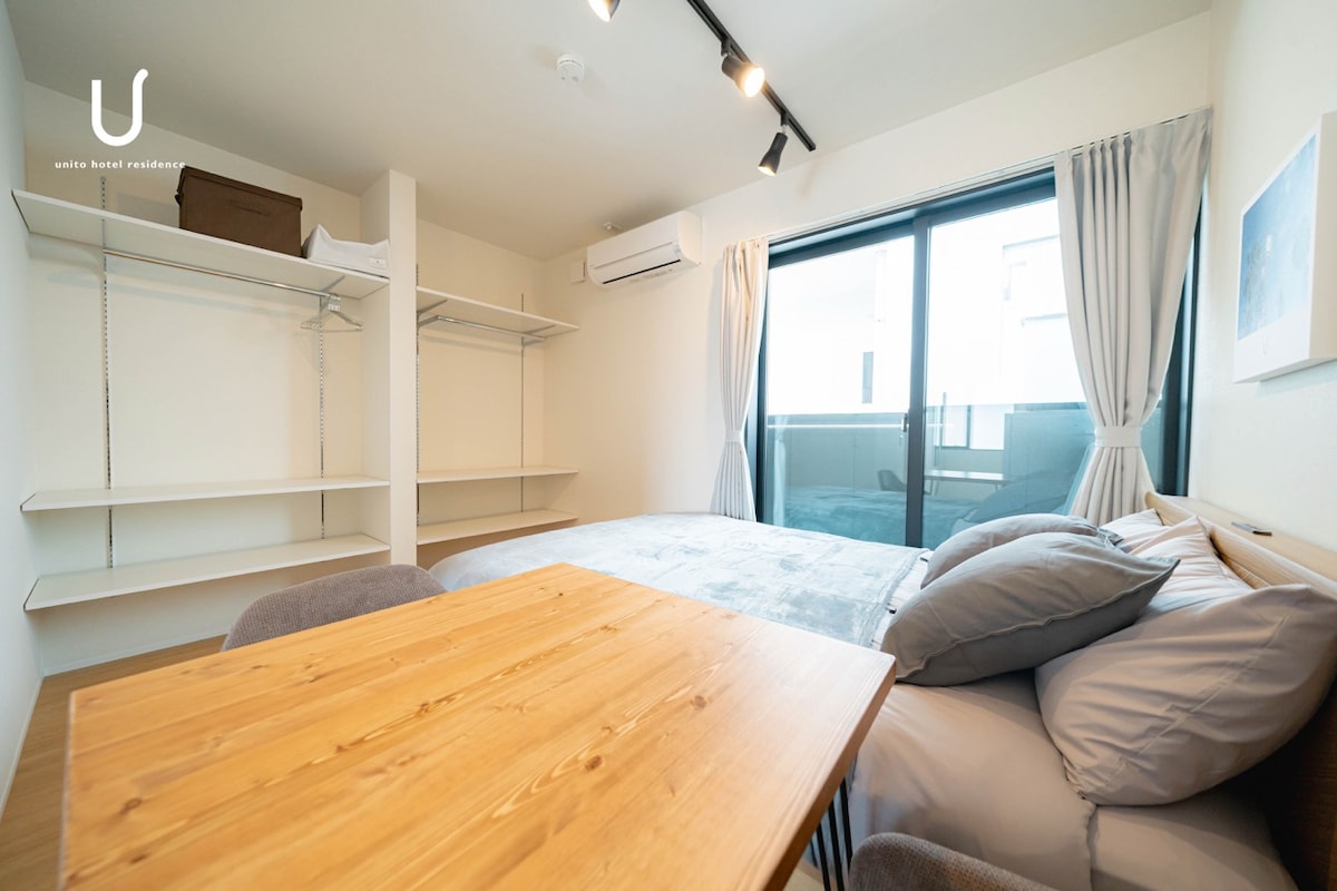 A 6 minutos a pie de la salida Tsukushi de la estación de Hakata. Una habitación de un apartamento remodelada como hotel. Una cama doble, 24 m² de superficie