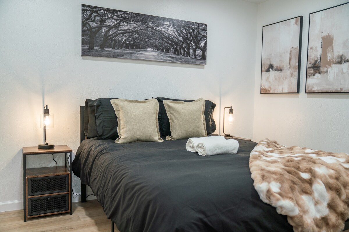 Relájate en este elegante refugio de 1 habitación, situado en el centro de la ciudad. Sumérgete en una lujosa cama tamaño queen, relájate en la silla huevo o en el sofá de cuero que se convierte en cama, y cocina en una cocina totalmente equipada con electrodomésticos de acero inoxidable. El wifi de alta velocidad y la televisión inteligente hacen que sea perfecto para viajes de negocios o de placer. Estás a minutos del centro de la ciudad, Deep Ellum y Lower Greenville, pero escondido en un barrio tranquilo con estacionamiento gratuito. Se aceptan estancias largas.