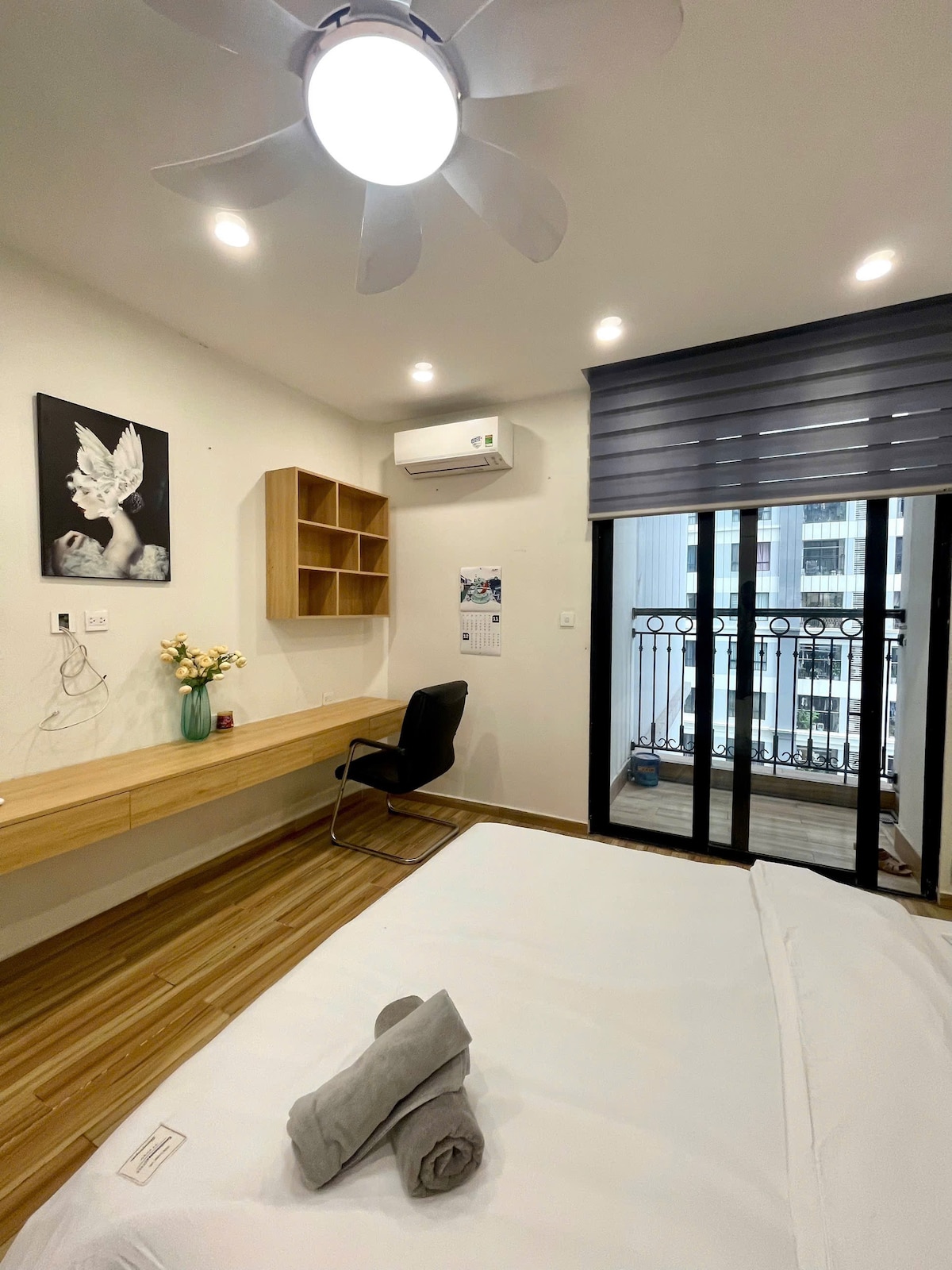 El apartamento de 55 m2 pertenece al edificio del área urbana de Vihomes Times City con instalaciones completas desde piscina, acuario, centro comercial, hospital, escuela en el lugar. ● El apartamento consta de 1 dormitorio principal, 1 sala de estar, 1 baño equipado con muebles de clase alta, con balcón. ● El dormitorio con cama tamaño queen y toda la ropa de cama suave, con aire acondicionado, te da un sueño bueno y profundo. ● Televisión inteligente con WiFi, NETFLIX. ● Refrigerador, lavadora, horno.