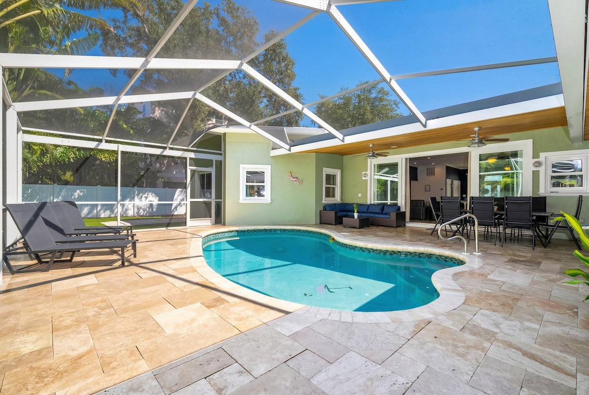Charming Salty Harbor sits in a quaint, exclusive corner of AMI and boasts a private heated pool and ample parking for 2 vehicles and even a boat: -Ask us if your dates don't fit our calendar! -If you don't have a single 50Lb pet, please discuss it with us -One of the twin boutique MyAnnaMariaStay homes, look us up! You'll love the luxury mid-century feel, lush yard, and a 6-min walk to the beach, Publix or the trolley stop. AMI was voted a top 50 vacation spot in the world in 2024