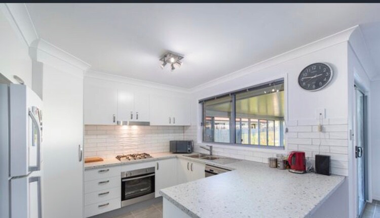 Our unit is airy, light and spacious. The unit has two entrances with easy access from the parking area. We have three sitting out door areas. We have a gas bbq. The kitchen is huge and has everything a kitchen needs. The unit has a washing machine. The unit is not air conditioned but has ceiling fans. There is a big dining table and a big tv lounge. The bedroom space is big with a queen size bed, a king single and a single. This is a non smoking unit.