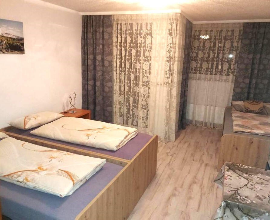 Nuestro apartamento tiene 100 metros cuadrados. 2 dormitorios con cama doble y una cama supletoria ... Bajo petición, también se puede inflar un colchón grande...La cocina es con todo lo que va con ella (estufa de inducción), nevera grande,microondas , horno . Toallas, ropa de cama... gran balcón en el pasillo y una gran sala de estar con instalaciones adicionales para 2 personas. Baño con bañera en la esquina.Bajo petición, se puede agregar una cama para niños pequeños.
