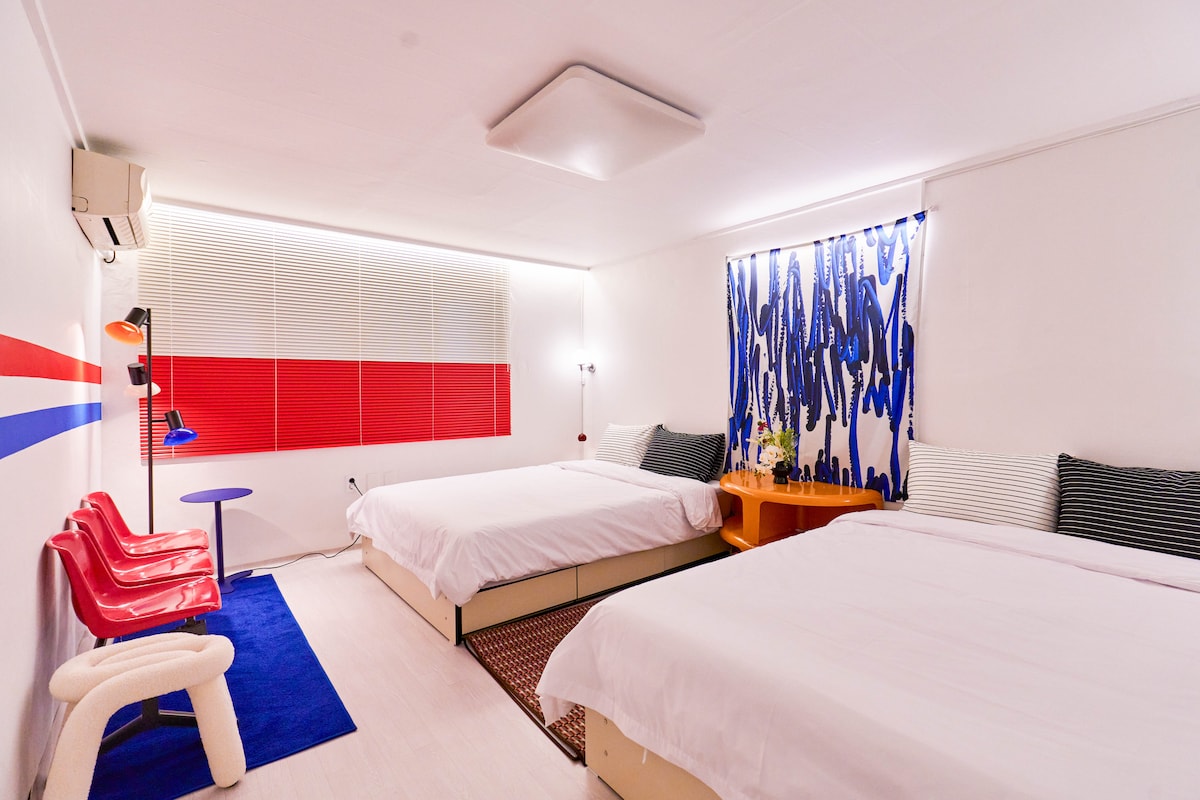 NUEVO ABIERTO Frente a la salida 3 de la estación de Hongik University, habitación 3 + sala de estar y cocina (3 camas queen, 1 cama individual)