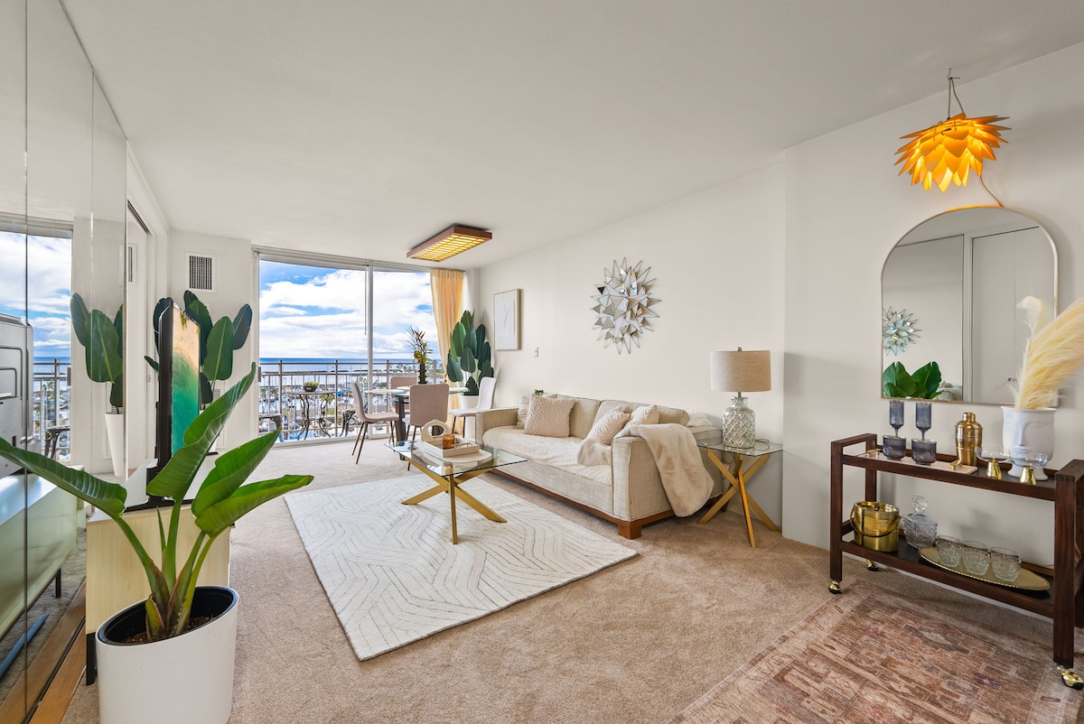 Aloha, bienvenido a la suite Boho, un oasis elevado frente al mar con vistas panorámicas al puerto deportivo y aparcamiento gratuito. A solo unos pasos de las mundialmente famosas playas de Waikiki, este refugio luminoso y elegante tiene todo lo que necesitas para vivir en la isla sin esfuerzo. Características como wifi rápido, Smart TV, estación de café premium, bar Royal, kit de playa definitivo con equipo de esnórquel son solo algunas de las ventajas de la buena vida. Siéntete con el sonido de las olas y despierta con la vista turquesa del océano. ¡El paraíso te espera!
