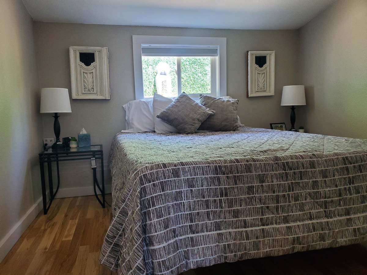 Votada por TripAdvisor como 1 de las 15 mejores escapadas de fin de semana para parejas en los Estados Unidos, esta acogedora habitación se encuentra en el encantador barrio de Heights in Hood River. Ven a explorar una variedad de microcervecerías eclécticas, galardonadas bodegas y huertos orgánicos. Con el paseo marítimo en todo su esplendor de verano y la montaña (Mt. Hood) en todo su esplendor de invierno, a poca distancia en auto de la casa, ¡este espacio pragmático es un refugio maravilloso en cualquier momento del año!