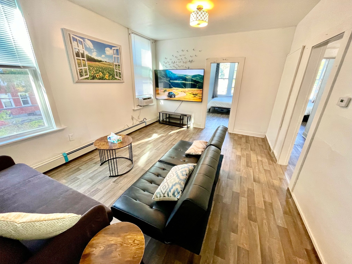 Apartamento ático privado recién renovado cerca del centro de Hudson con cocina americana, sala de estar y dormitorio/oficina. ¡Un espacio cálido y acogedor con mucha luz natural! ¡Acabamos de cambiar la cama por una nueva cama tamaño king! Aparcamiento gratuito en el lugar. A poca distancia a pie de restaurantes, tintorerías, tiendas de antigüedades, patinaje, centro comercial, gimnasio, cervecerías, campo de golf... ¡y mucho más! ¡Muy cerca hay muchos sitios históricos, zonas de esquí y zonas para nadar!