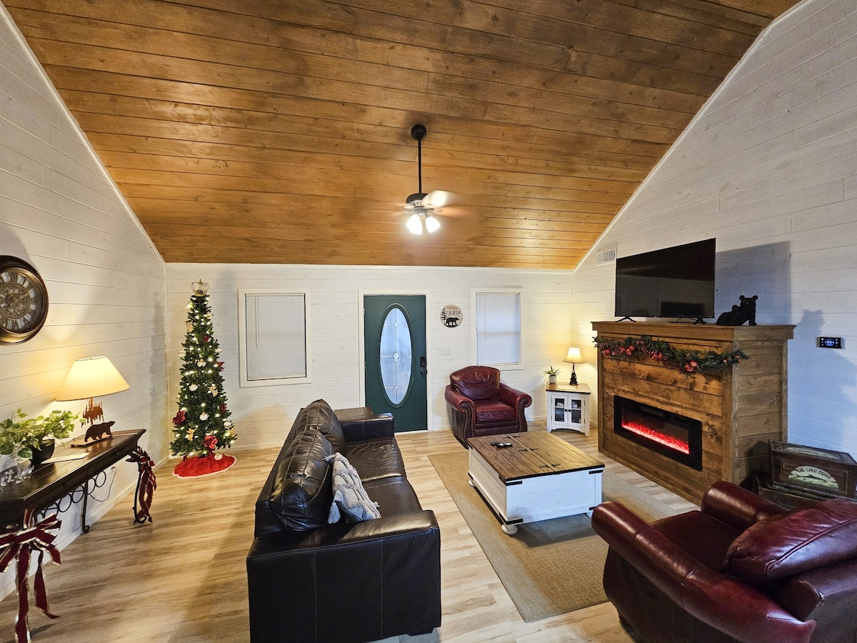 McCrary Country Cottage built in the early 1920’s, is set amid country pastures and surrounded by huge oak trees. The front porch is so peaceful with a porch swing and chairs. The interior is totally remodeled with all new appliances.A large open hearth room/ kitchen and dining room combination. The kitchen has an 8’ eat on bar. Utility room with a built in ironing board and iron. Just 2 miles out of the Nashville city limits. A totally relaxing experience.