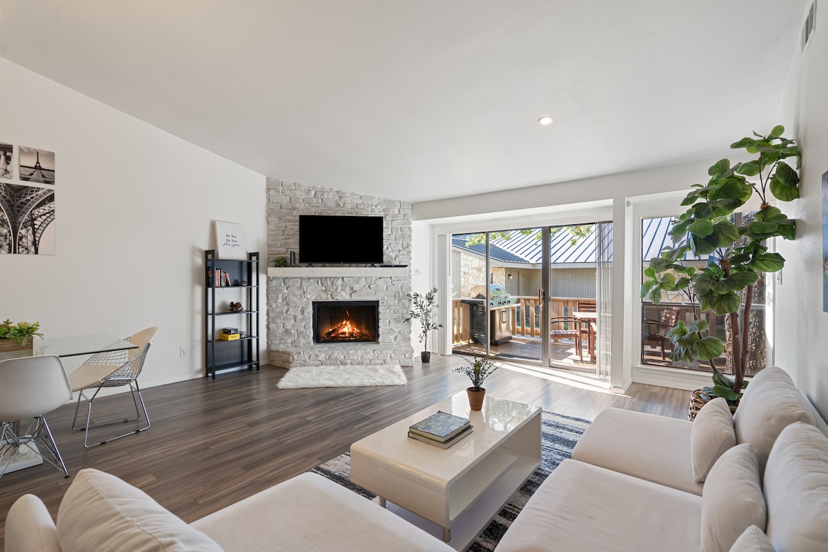 Alójate en este lujoso condominio de 2 dormitorios y 2 baños en The Waters en Horseshoe Bay, a solo unos pasos del Yacht Club. Este espacioso refugio cuenta con dos hermosos dormitorios, una cocina totalmente equipada, acabados de diseño, lavadora/secadora y un balcón privado. Disfruta de los servicios de estilo resort, como la piscina y el jacuzzi justo afuera. Perfecto para parejas, familias o grupos pequeños que buscan una escapada relajante y exclusiva de Hill Country cerca del lago.