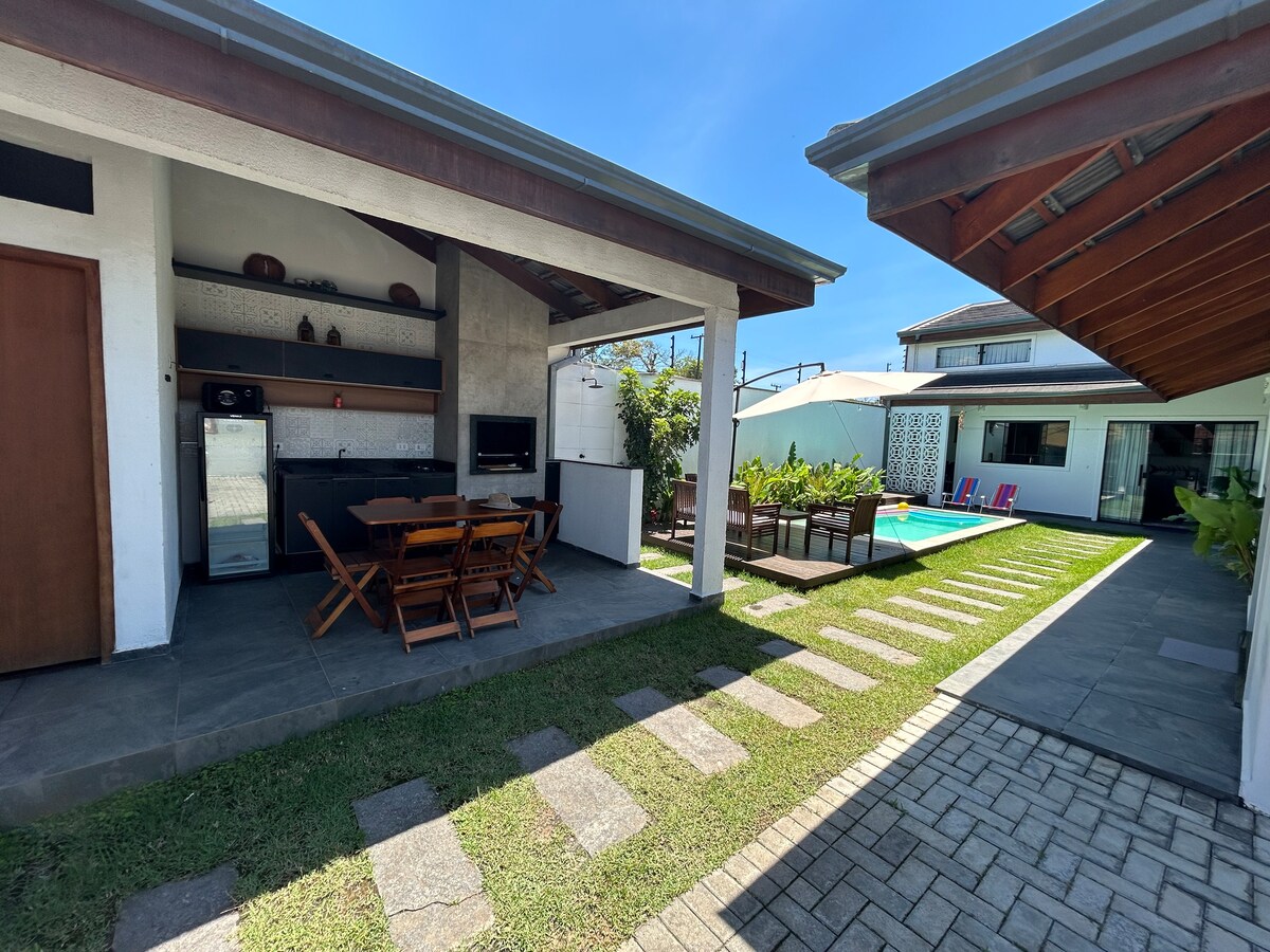 Viva dias incríveis em Guaratuba! Nossa casa moderna oferece total privacidade a apenas 3 min de carro da praia. Perfeita para até 9 pessoas, conta com 2 suítes, ar-condicionado e mezanino para jovens. Destaques: • Piscina privativa com iluminação noturna. • Área Gourmet completa com churrasqueira e cervejeira. • Wi-Fi rápido e 3 vagas de garagem. • Kit bebê: Disponibilizamos berço e cadeirão. Localizada no seguro bairro Cohapar, é o refúgio ideal para famílias que buscam conforto e lazer! 🌊