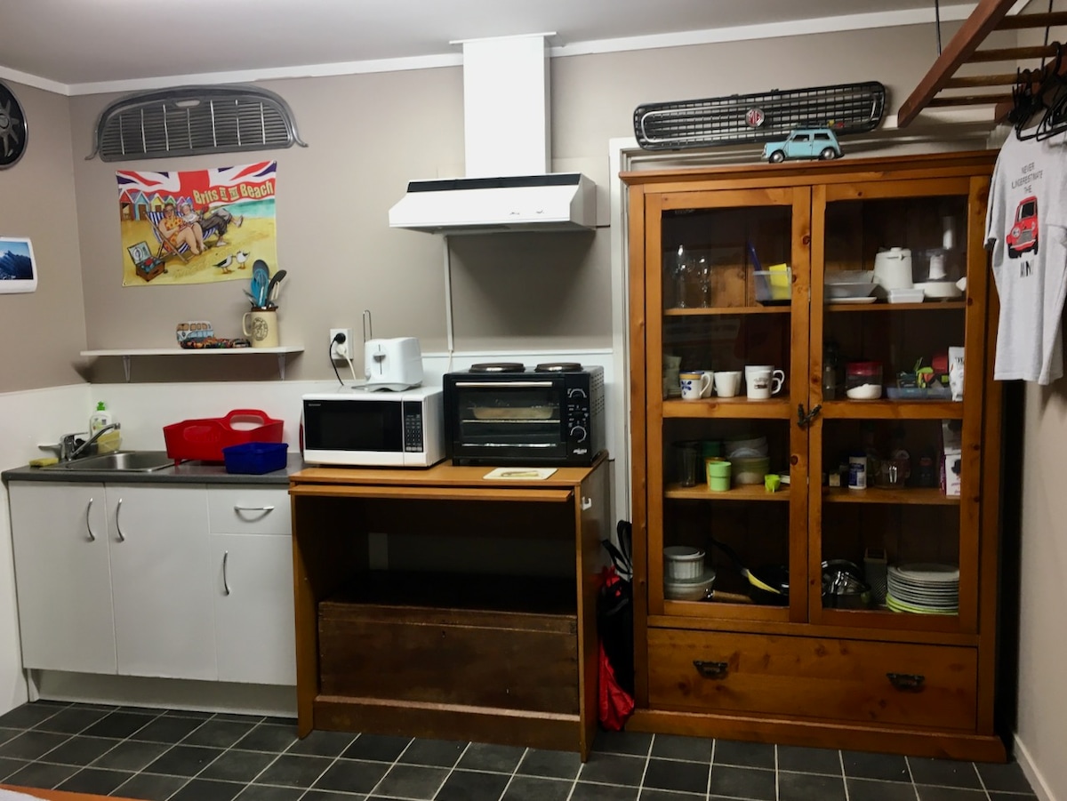 Habitaciones luminosas y cálidas, ubicadas en la planta baja de nuestra casa familiar. Tiene un salón con un sofá cama tamaño queen, mesa de comedor, nevera/congelador completo, tu propio baño privado y un dormitorio queen separado con cocina americana. Hay una entrada independiente con estacionamiento en la calle. Ubicado cerca de dos playas familiares seguras y Howick Village. Hay muchas opciones para cafeterías, tiendas y senderos. Estaremos encantados de compartir nuestro maravilloso entorno.
