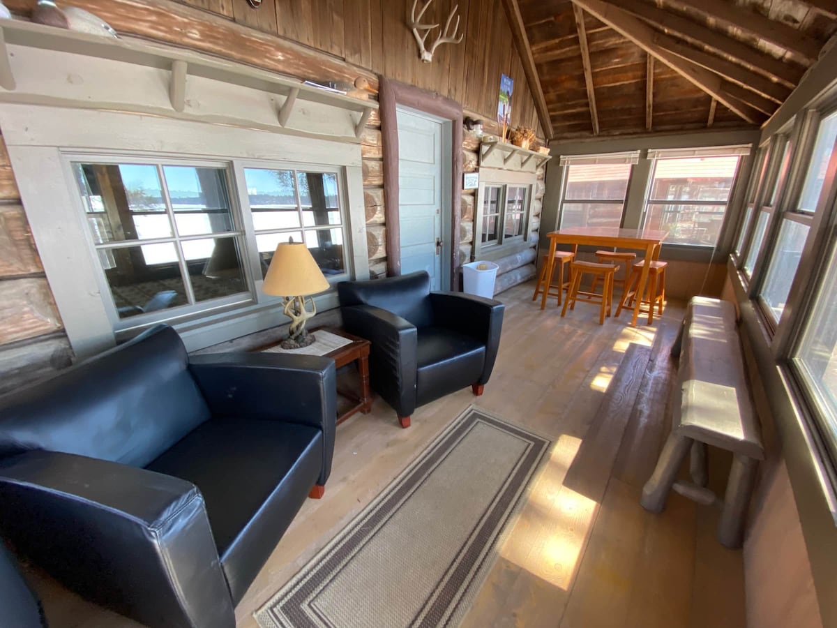 Cabaña de troncos histórica con el porche perfecto justo en el agua. Cocina de eficiencia simple y un 1/2 baño. Las cabañas también vienen con una mesa de picnic. Dúchate en el lago o en nuestra casa de baños renovada (con lavandería). Disfruta de un libro en tus sillas personales Adirondack, tira una línea fuera del muelle de pesca o camina a través de nuestro bosque privado de 60 acres. Perfecto para familias, escritores o cualquier persona que quiera reconectar con la naturaleza. Balsa de natación, canoas, kayaks, barcos de pesca y pontones disponibles.