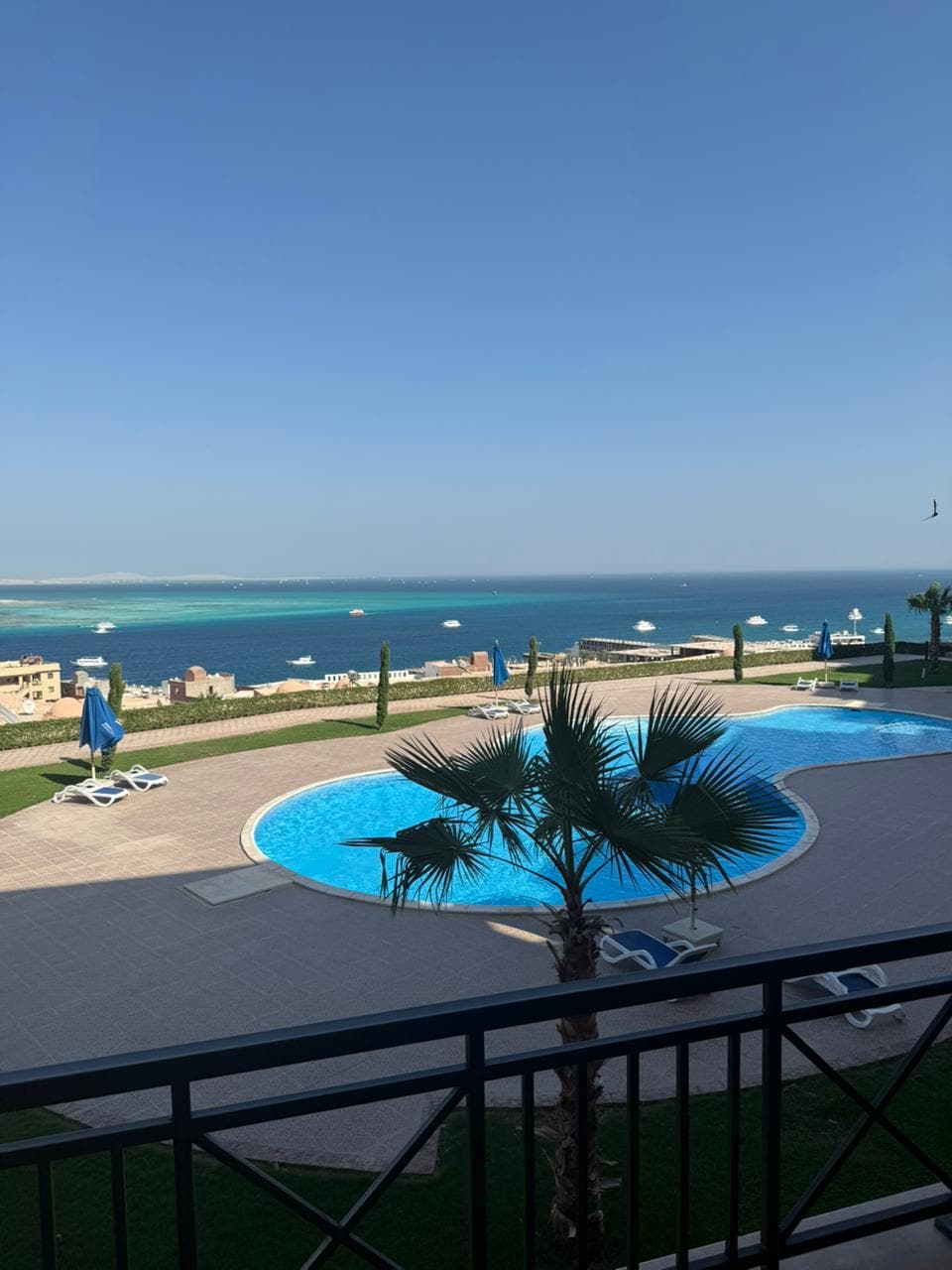 Tómate un descanso y relájate en este oasis de paz. Estudio con vistas a la piscina. El estudio ofrece: 1. Cama Queen. 2. Sofá cama. 3. Smart TV. 4. Cocina. 5. Mesa de comedor. 6. Baño. 7. Wifi. 8. Lavadora. Observación importante: se requiere un certificado de matrimonio oficial para los egipcios. (No se permite Orfi)