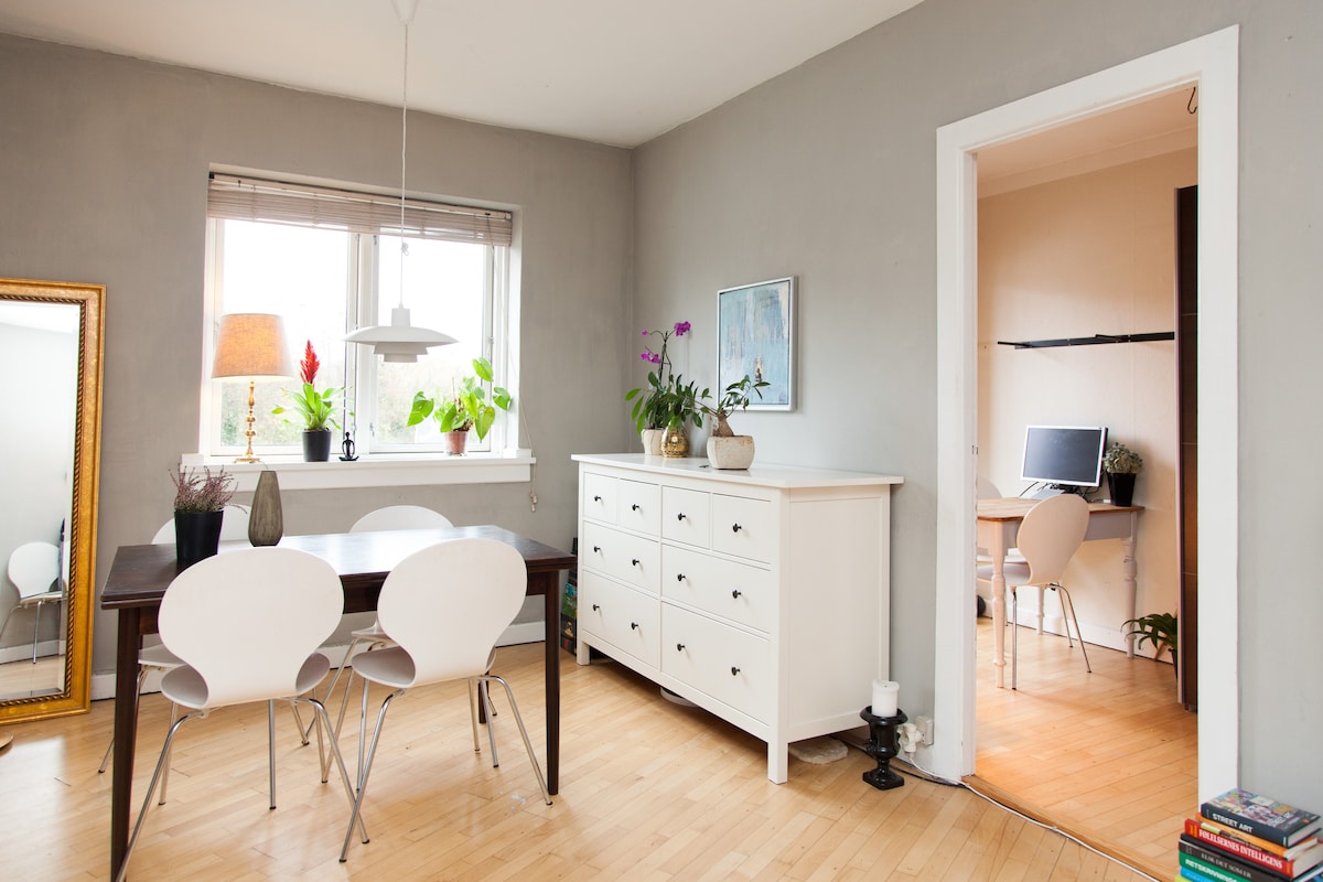 Apartamento elegante y espacioso de 2 plantas, perfecto para 2 a 4 huéspedes que buscan una estancia cómoda y hermosa en Copenhague. Este departamento cuenta con una cocina y un baño nuevos, un comedor luminoso y una sala de estar que se transforma fácilmente en un segundo dormitorio. Tiene el dormitorio principal y una oficina en casa arriba. También un hermoso balcón y un vestidor. Se tarda 2 minutos en llegar a la estación de tren, lo que te lleva a la estación Grand Central en 11 minutos.