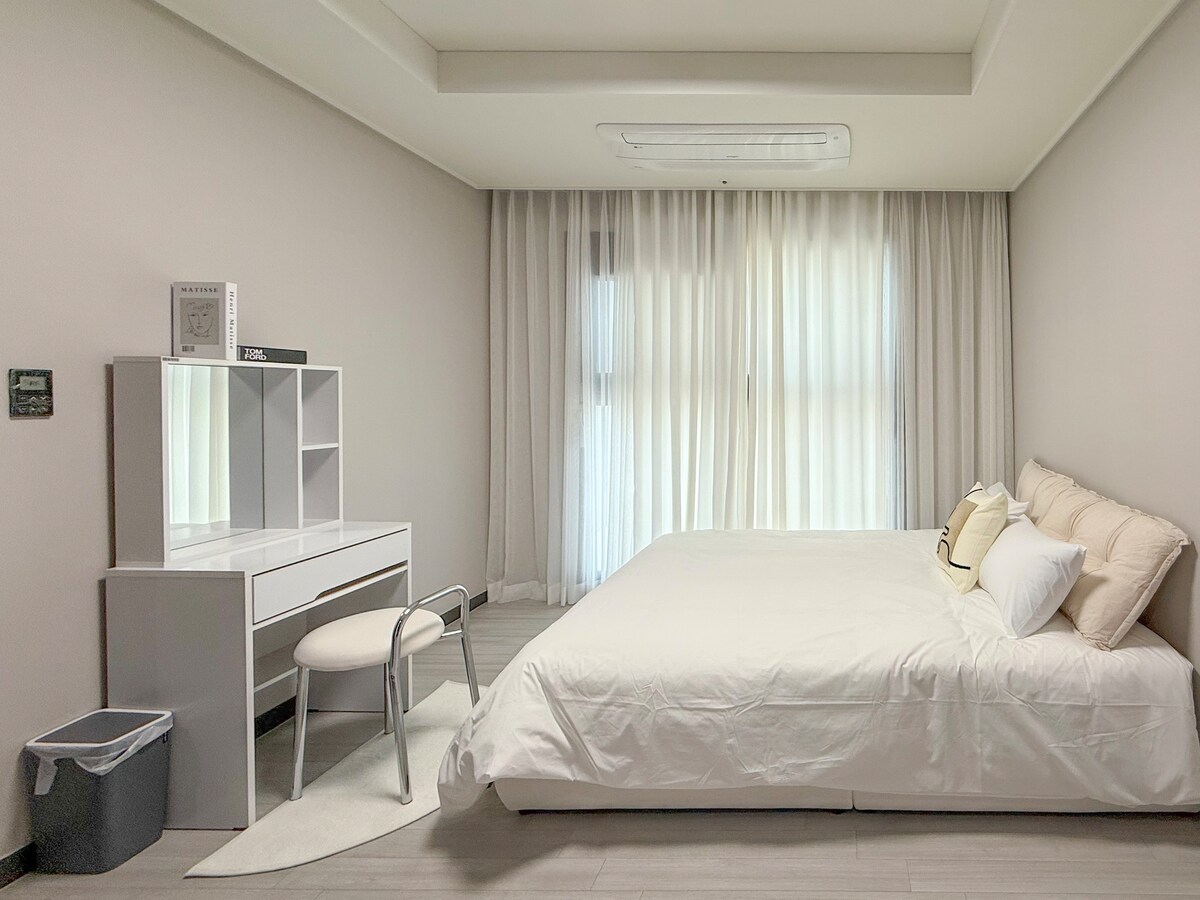 Happy Day, situado en el centro de Changwon, es un espacio que ofrece descanso y disfrute completos a todos los visitantes. Con 3 habitaciones y 2 baños, la familia, los amigos y los compañeros de trabajo pueden alojarse cómodamente y pasar el tiempo cómodamente como en casa. Especialmente, la terraza especial de Happy Day es un espacio acogedor donde puedes sentirte relajado. Disfruta de tu café matutino bajo el cálido sol o disfruta de la brillante vista nocturna de la ciudad con una brisa fresca por la noche. Puedes crear recuerdos inolvidables manteniendo una conversación tranquila con tus seres queridos o disfrutando de una copa de vino.Puedes llegar a las principales atracciones turísticas a pie o en un corto viaje, por lo que incluso el tiempo que pases viajando estará lleno de recuerdos divertidos. Un día feliz es más que una estancia. Es un refugio privado donde puedes crear recuerdos preciosos con tus seres queridos y descubrir la verdadera felicidad en tu ajetreada vida diaria. Comienza una experiencia especial en la que tu cuerpo y tu mente descansen en un día feliz y completa tu propio día feliz.