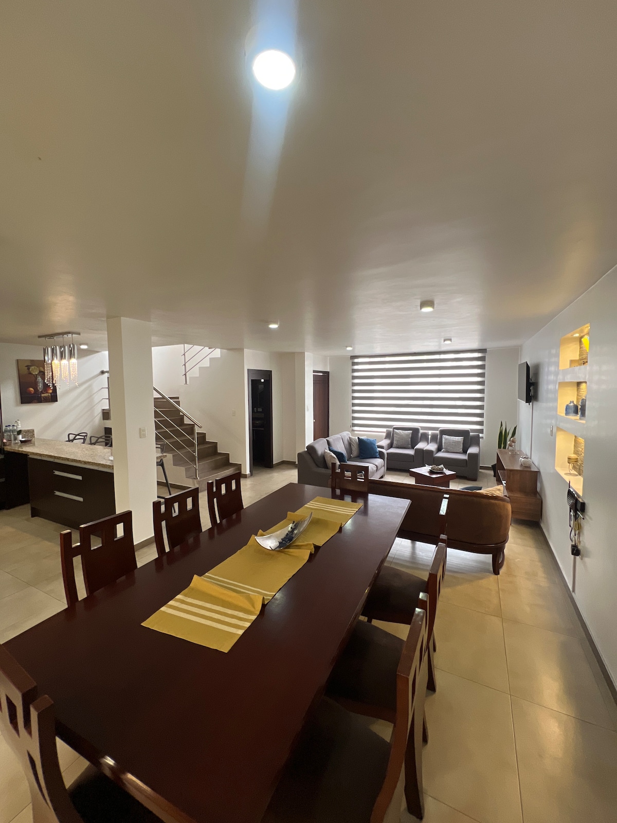 You won't find a home like ours in Ibarra! This is a beautiful house with a modern minimalist design in a quiet residential neighborhood, two blocks away from the main shopping center, financial institutions, and restaurants. It has three large bedrooms, each with a private bathroom and king or queen beds, TV room, fully equipped modern kitchen, garden, terraces, secure parking and WiFi.