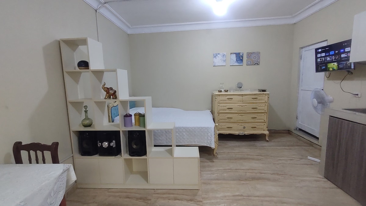 Hermoso mini-departamento en la zona turística de Ica, a una cuadra de la plaza de armas. Cerca puedes encontrar restaurantes, bancos y un mall. Cuenta con una cama 2 plazas , sala comedor con televisor con Netflix, cocina y un baño pequeño. También tenemos aire acondicionado. El mini-departamento se encuentra al lado de una Av. Principal. Y está en el 3er piso. Por favor leer que es un MINI departamento. El baño es pequeño.