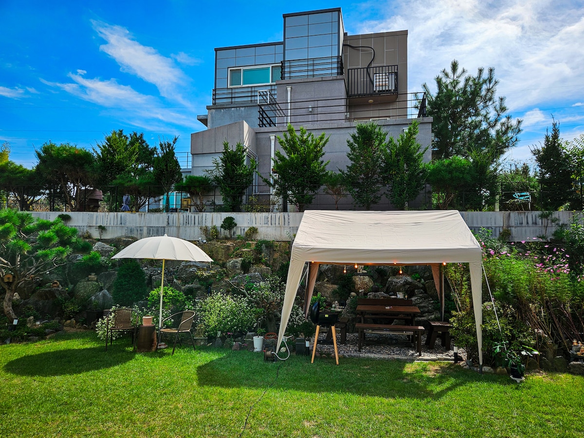 Descanso # Habitación privada # Barbacoa # Fogata # Karaoke # Terraza abierta en el techo (toldo eléctrico) # Jardín de césped # Tienda de campaña