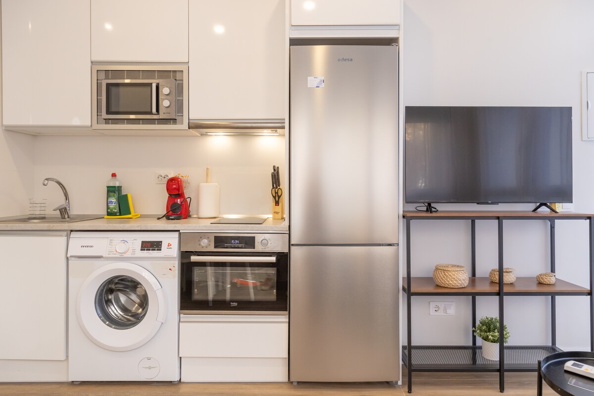Como Superhost 🏅, te ofrecemos un apartamento reformado de 40 m², 🛏️ con todo lo necesario para tu estancia. Wifi rápido 📶, cocina completa 🍳 y un baño moderno y bien diseñado 🛁. Metro a 2 min 🚇. Reserva con tranquilidad con cancelación flexible y disfruta de comodidad y estilo 🛋️
