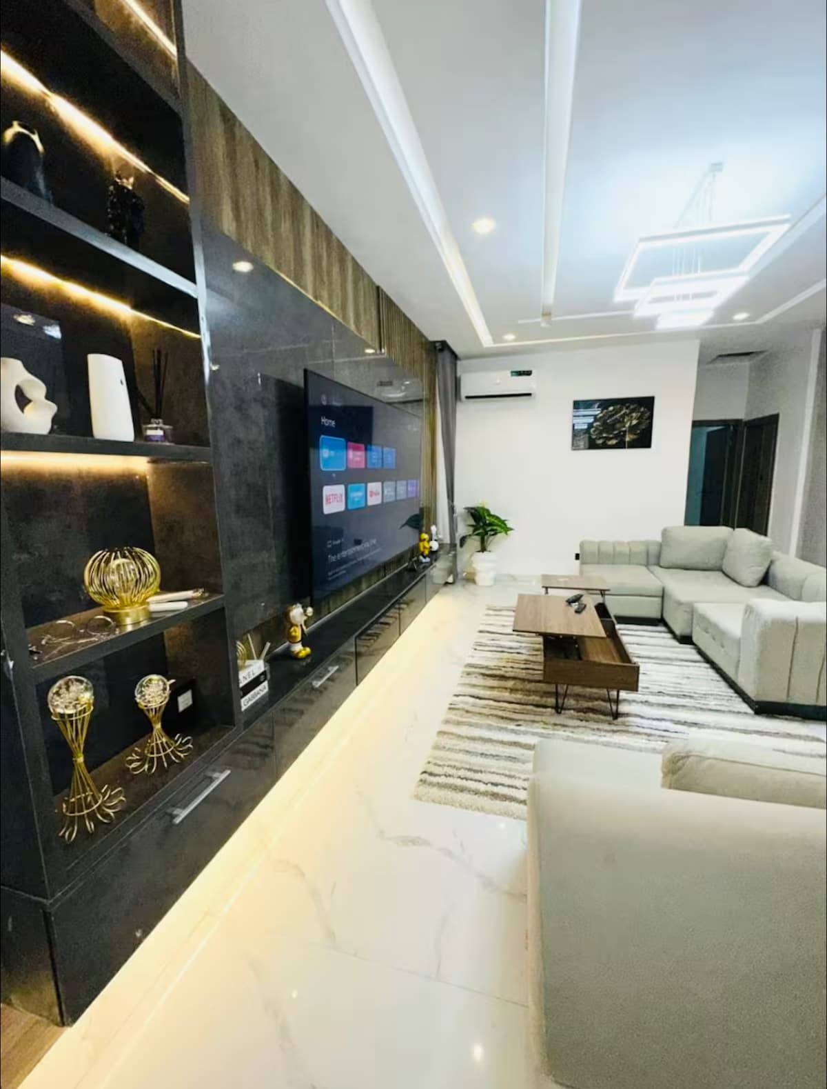 - ***24/7 power supply - Good access road - High security - Fully furnished - Gas cooker - Oven - Fridge - Washing machine - TV - Super King size bed in King & Queen & King Size in other rooms, all with en-suite - AC - Dining table - The house is adorned with top-notch quality fittings/ fixtures - Well interlocked compound - 8 zone sound system - Amazon, Netflix and Youtube entertainment system - Shared Pool and Gym - King/Queen bedrooms with balcony - Well designed & beautifully fitted Kitchen