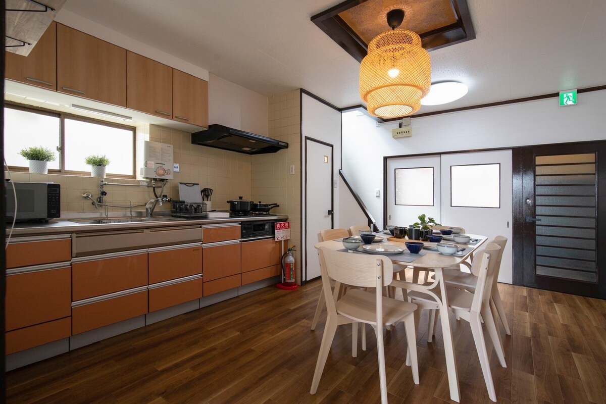 Ubicada en Joto Ward de Osaka, esta casa histórica de 1909 es un raro sobreviviente de la Segunda Guerra Mundial. Renovado en 2015 por un reconocido diseñador, abarca 150 !, mezclando el encanto histórico con el lujo moderno en un tranquilo refugio en el centro de la ciudad. Su elegante diseño armoniza el pasado y el presente, ofreciendo inmersión cultural y comodidad espaciosa. Con dos baños, inodoros separados, lavabos y un baño grande, garantiza privacidad y limpieza para grupos. Experimenta la cultura, la historia y la comodidad que te espera tu estancia perfecta en Osaka.