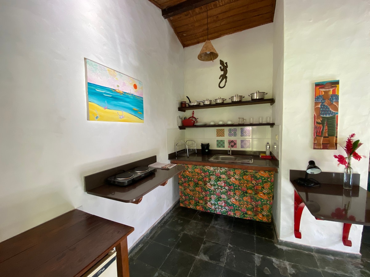 Bangalô Rústico com café e poucos minutos da praia