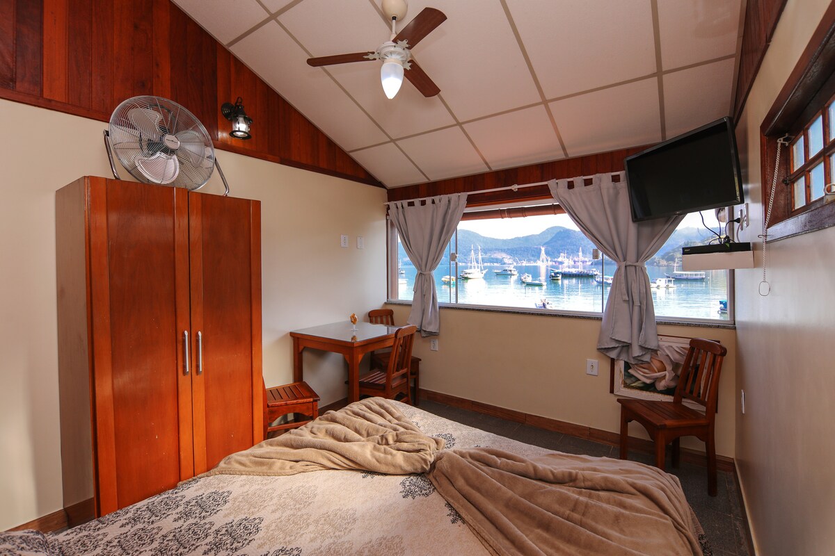 Morada Aguiar Kitnet, con cocina, se encuentra en Vila do Abraão- Ilha Grande, a 100 metros de la playa. Tiene capacidad para parejas, familias con niños y solteros. Es una construcción de madera de Lei, tiene 24 m2 de área, un solo entorno,sin separación : dormitorio y cocina integrada y baño privado,entorno, tiene capacidad para 4 personas.