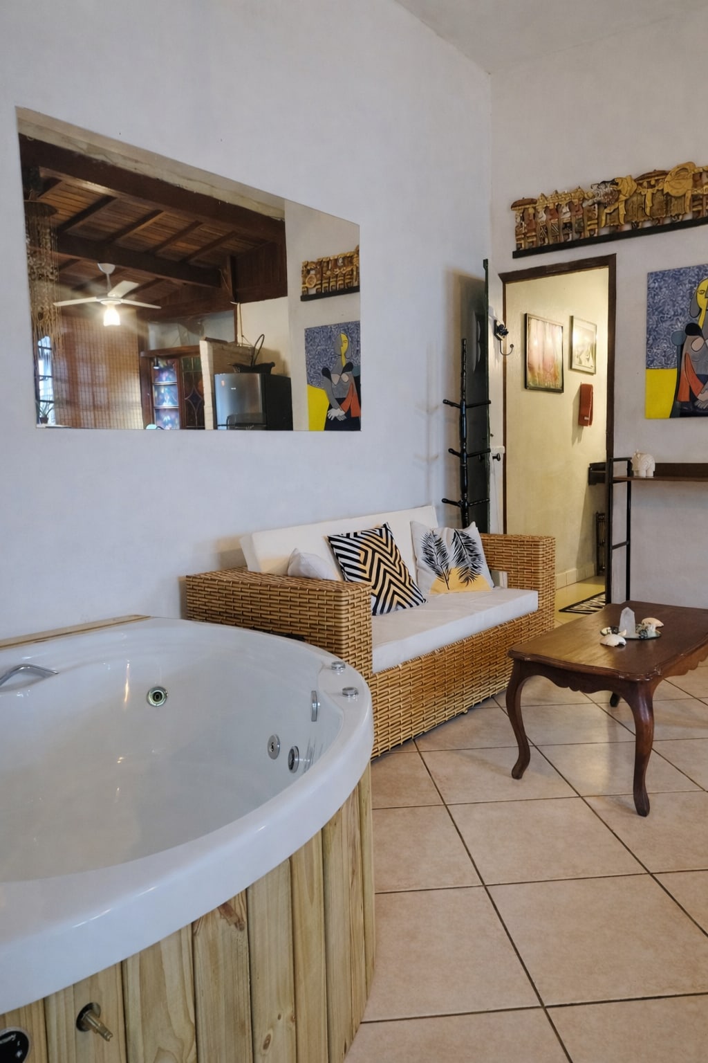 Aquí su estancia es una experiencia fuera de lo común. Lea los testimonios sinceros de los huéspedes que se han enamorado del Chalé da Reserva. Un lugar acogedor y en armonía con la naturaleza. Condominio seguro a 800 metros de la playa (región del canal de São Sebastião e Ilhabela). Terraza con jacuzzi y mesa de comedor. Barbacoa y jardín con vistas al bosque. Relájese y contemple el bosque, el sonido de los pájaros y el arroyo. Perfecto para parejas. Tiene capacidad para 4 personas. Wifi y TV abierta.