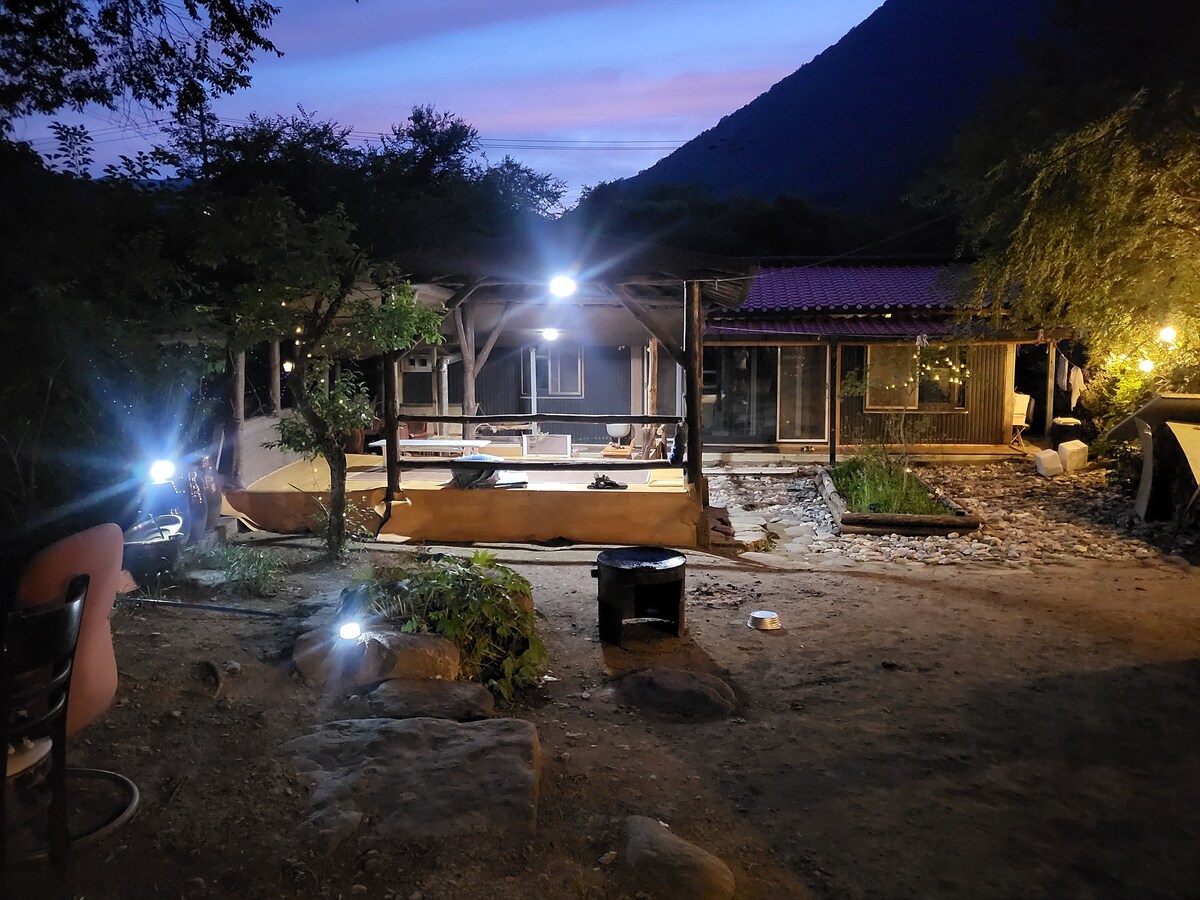 Es un espacio donde se puede disfrutar tranquilamente de la curación en la naturaleza, y es un pequeño edificio separado que consta de un doble piso orientado al valle. El interior es pequeño, pero el patio y el sitio son espaciosos, por lo que puedes moverte libremente, y también hay un espacio separado para barbacoa. Tiene capacidad para un mínimo de 2 personas y un máximo de 4 personas. En verano, también puedes pintar tiendas de campaña en el patio o en el valle, y hay un valle frente a la casa, que es bueno para jugar en el agua, y puedes ver el magnífico paisaje de Odaesan durante todo el año. La barbacoa está equipada con parrilla y linterna, y puedes comprar tu propio carbón vegetal y usarlo tú mismo. Alarma de humo del extintor Hay una alarma de fuga de gas. Se proporcionan nevera, inducción, microondas, cafetera, secadora, aire acondicionado, ventilador, olla, sartén, utensilios, toallas, champú, jabón, etc.