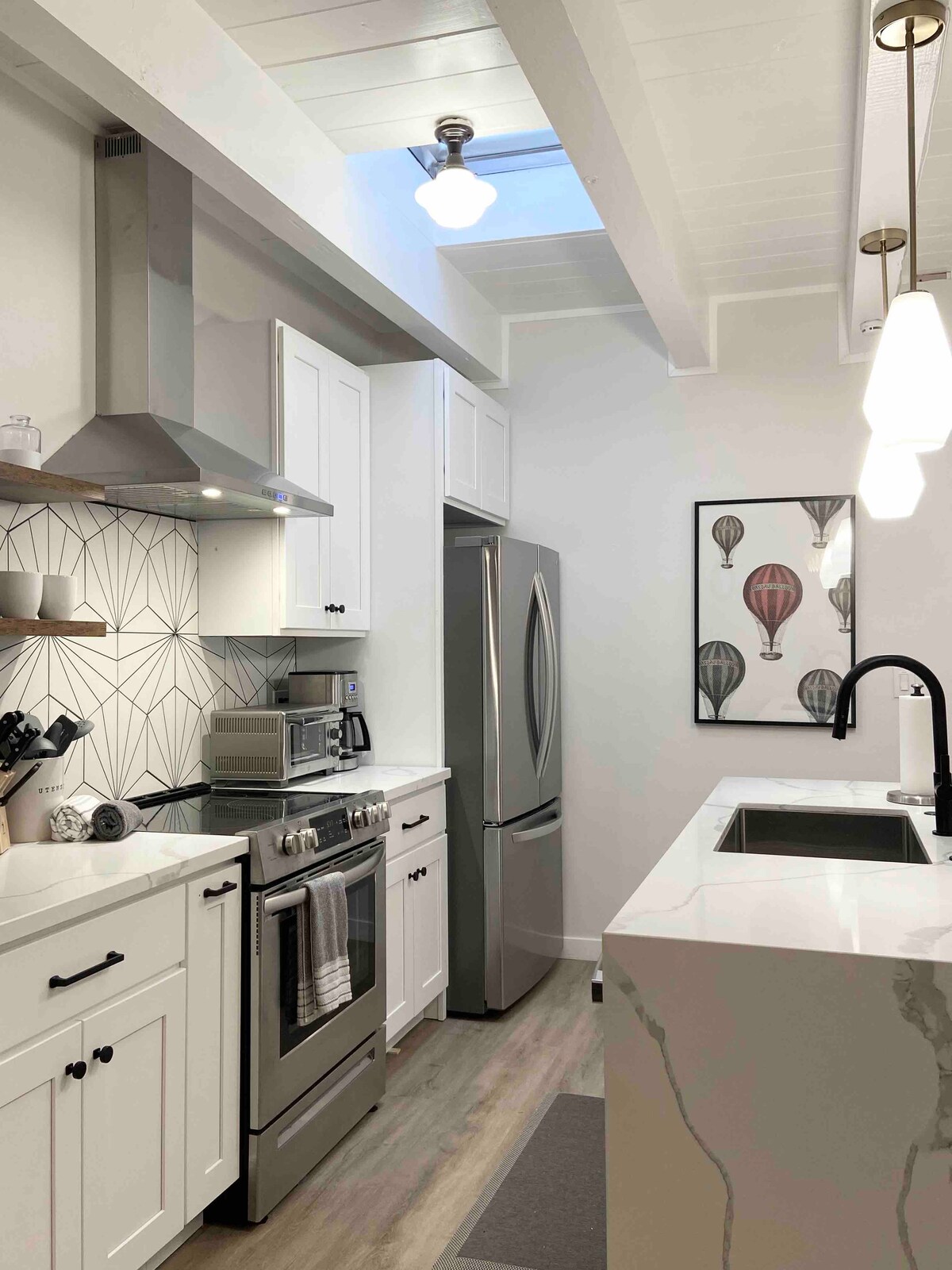 ¡Campamento base totalmente remodelado para tu estancia en Tahoe! Casa unifamiliar de 1386 pies cuadrados, techos abovedados, mesa de juegos de 12 en 1, 2 dormitorios, 2 baños, 2 televisores inteligentes (65" y 42") con streaming incluido y wifi de más de 200 Mb. El segundo dormitorio tiene una litera completa y una cama tamaño king. Está escondido en un barrio tranquilo. El patio con parrilla de gas está fuera de la cocina y hay un patio trasero privado. ¡Lavadora/secadora en la unidad! A 1 manzana del campo de golf Champ, a 5 minutos de Diamond Peak y a 10 minutos de Sand Harbor.