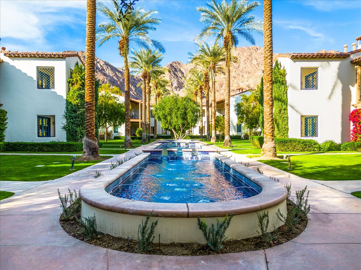 Incredible mountain views and close to everything great about the Coachella Valley... 1 mile from Indian Wells Tennis Garden (the 2nd largest outdoor tennis stadium in the world & home to the BNP Paribas Open), close to Coachella/Stagecoach Festivals, Palm Springs, PGA West, El Paseo, Old Town La Quinta, Joshua Tree National Park, and much more! This gated community, golf course adjacent, ground level 1 bedroom 2 bath condo is fully stocked and the pool is steps from your door.