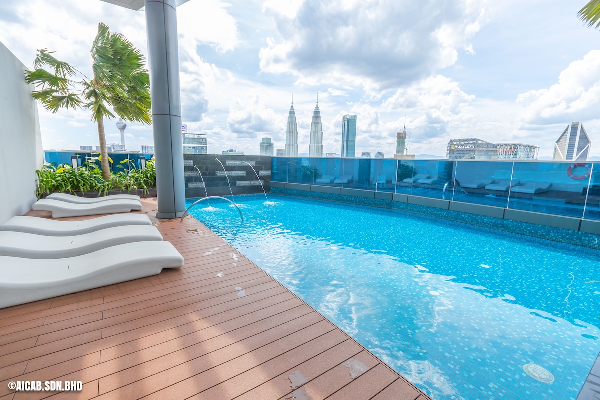 Acogedora suite de 1 dormitorio con piscina en la azotea y vistas a KLCC - Netflix