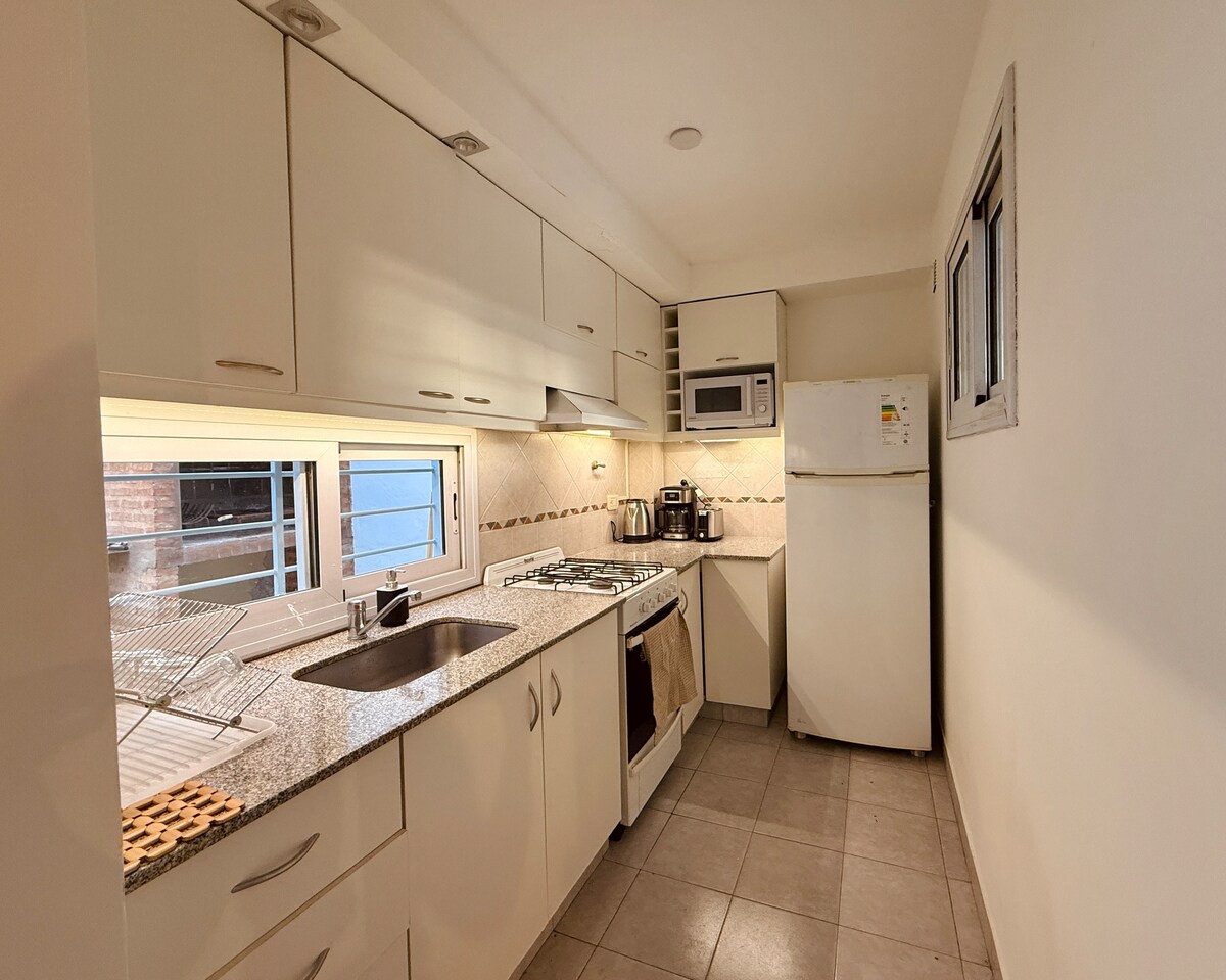 Departamento pequeño, con un dormitorio, moderno en planta baja. Ideal para 2 personas. Zona residencial, tranquila y cómodo acceso. Dispone de cable y wi-fi, aire acondicionado, TV 32”, heladera con frizzer y cochera descubierta para auto pequeño.