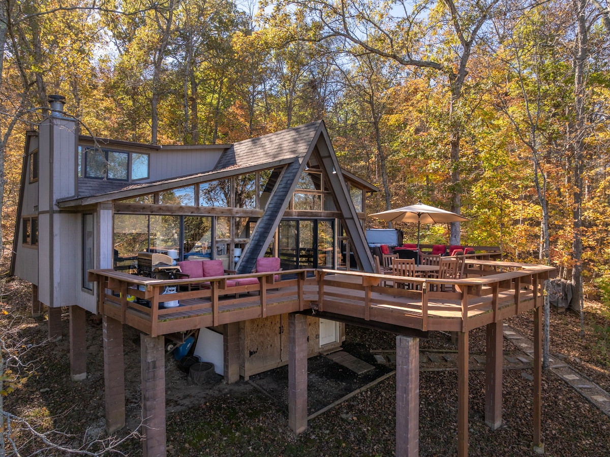 Ven a alojarte en «Redbird Cabin», nuestra casa de estilo alpino de 3 dormitorios frente al lago, justo en el agua, con hermosas vistas al lago desde la sala de estar. Tenemos mucho espacio para familias y amigos con todo lo necesario para disfrutar de tu retiro. Nuestra enorme área al aire libre es un gran espacio para hacer barbacoas, relajarse y sentarse junto a la hoguera. Ubicado en una comunidad cerrada dentro del centro vacacional Innsbrook (a una hora de STL), ¡te encantará la piscina comunitaria de temporada, el restaurante, el campo de golf, el gimnasio, el parque infantil y las rutas de senderismo!