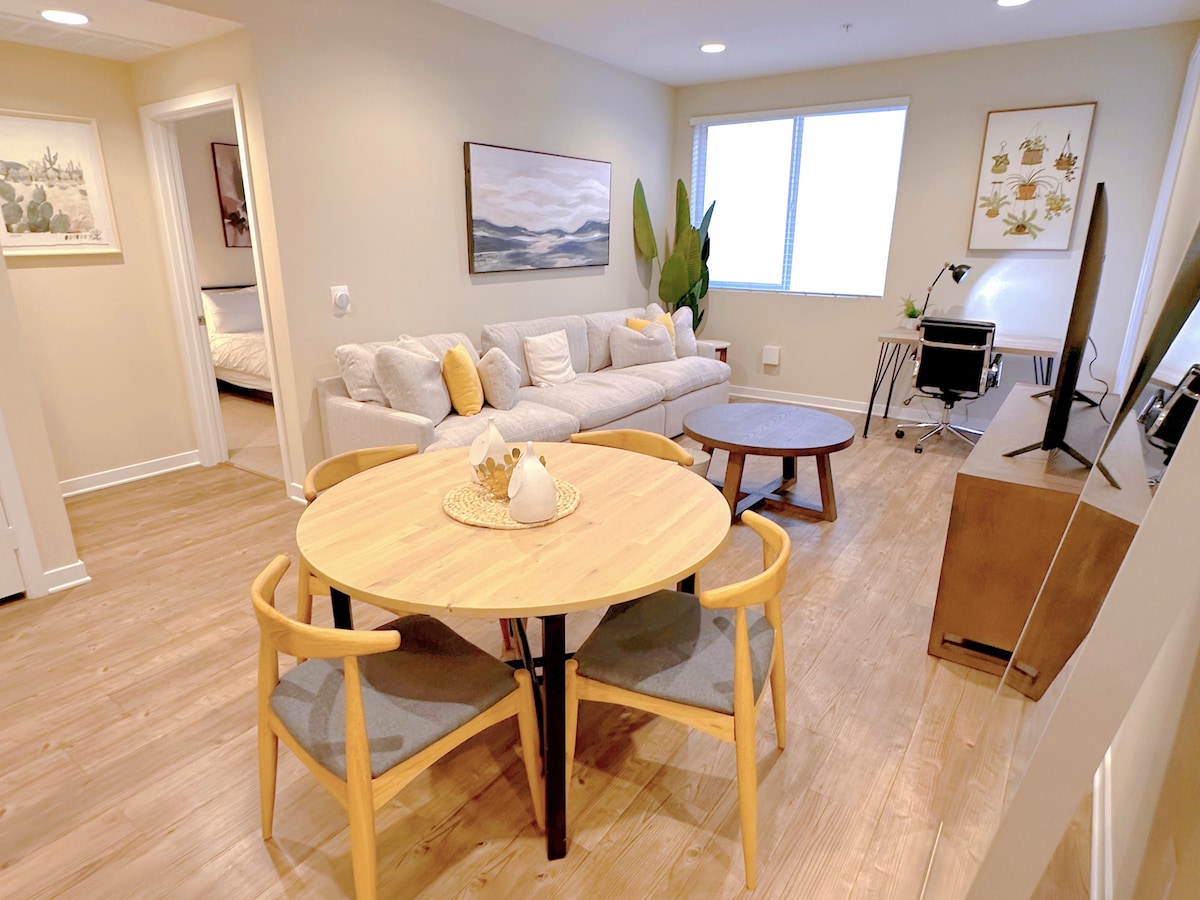 ¡Te damos la bienvenida a nuestro elegante refugio de 1 dormitorio! Ubicado en el corazón de Santa Ana/South Coast, este elegante espacio cuenta con un diseño contemporáneo, muebles elegantes y excelentes servicios. Ideal para personas que viajan solas o en pareja que buscan una escapada urbana de moda, nuestro apartamento cuenta con una cómoda cama tamaño king, una cocina totalmente equipada y una acogedora sala de estar perfecta para relajarse. Con un cómodo acceso a restaurantes y tiendas locales, disfrutarás de lo mejor de la vida en la Costa Sur durante tu estancia.