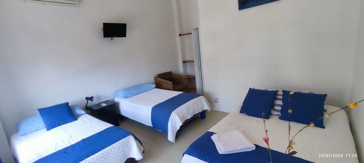 Cómoda y espaciosa habitación familiar cerca de la playa