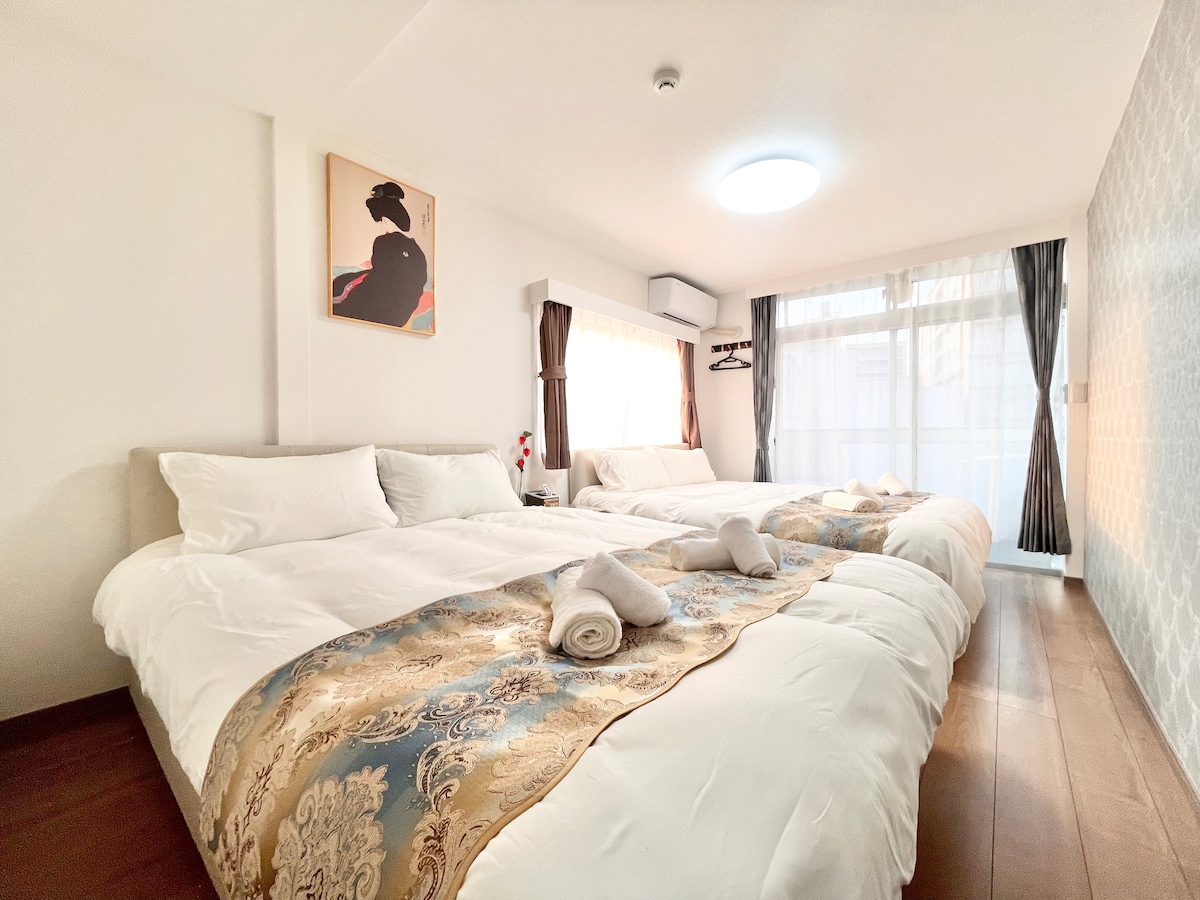 A spacious 40㎡ designer room in Tokyo, offering a relaxing stay unlike typical compact business hotels. Designed for true comfort, it features a refined interior where you can unwind completely. We provide a custom Simmons hotel mattress with hotel-grade bedding for deep sleep. Premium POLA toiletries are included. A Panasonic washer-dryer and garment steamer are available, ideal for long stays. Only 5 minutes from the station, with easy access to Ueno, Akihabara, and central Tokyo.