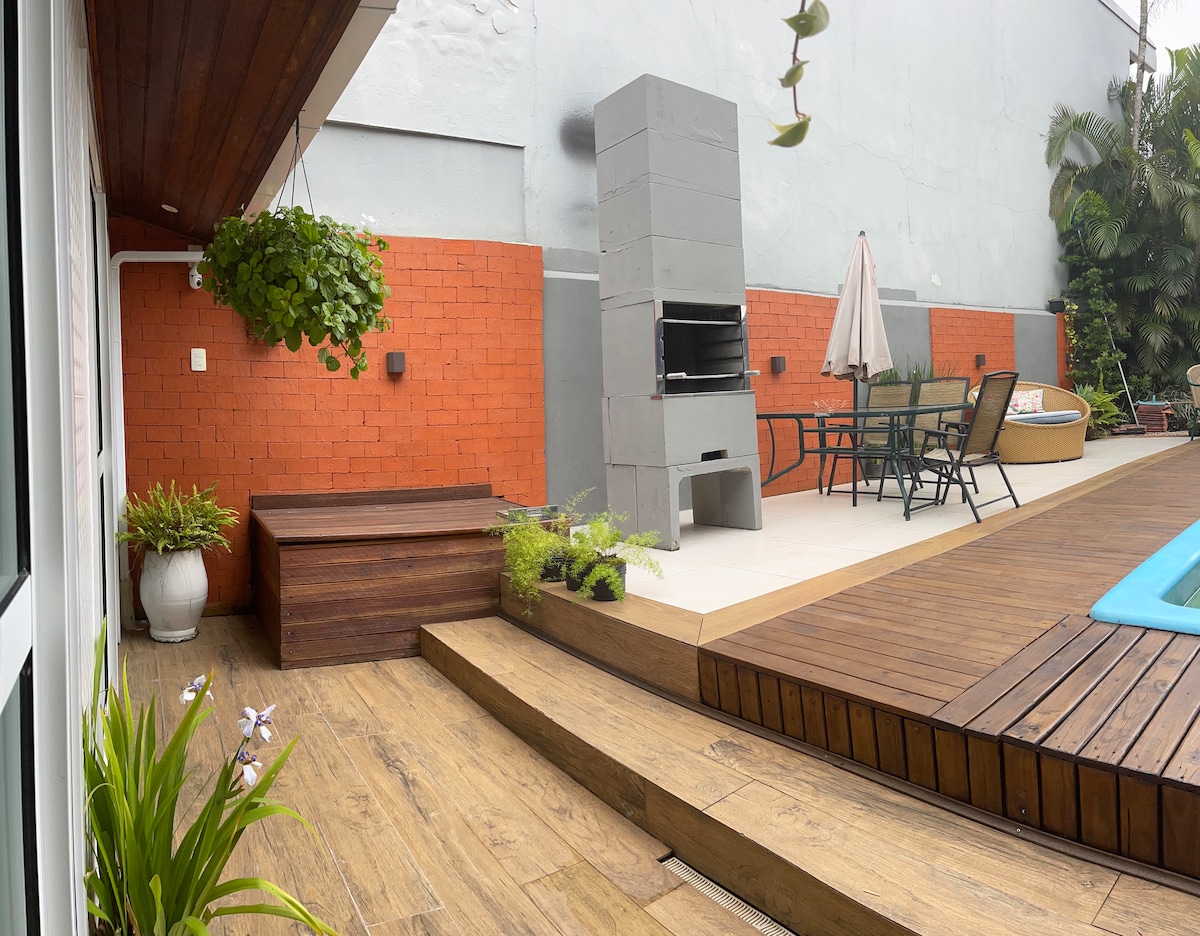 Apto c/ jacuzzi e churrasqueira área externa ampla