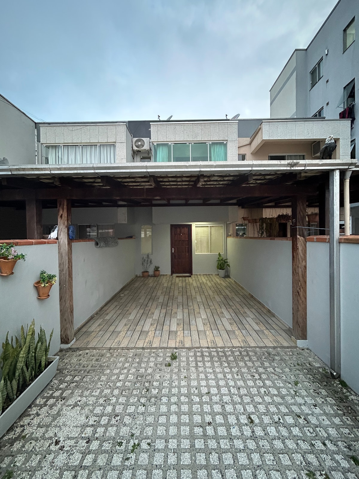 El alojamiento está en un vecindario residencial en un entorno tranquilo. Ideal para tu descanso o viaje a la playa. Ideal para parejas que buscan tranquilidad en un entorno completamente nuevo. Situado a 3,5 km de la playa central y a 3 km de br 101. A 2 km del supermercado y la farmacia. Tiene un baño completo, cocina americana con utensilios. Televisor inteligente de 55 pulgadas y cama tamaño queen. 1 plaza de aparcamiento incluida. Nota: SIN CONTENEDOR