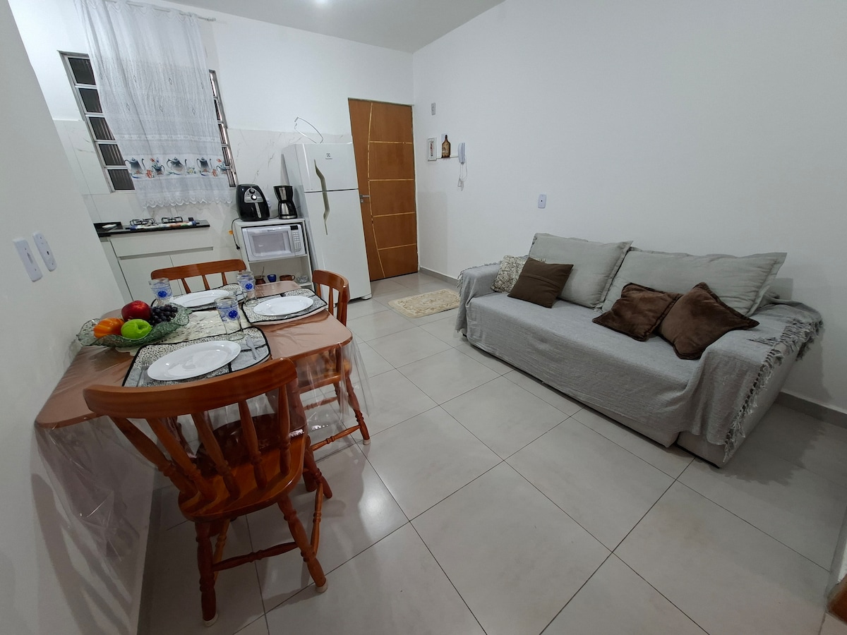¡Atención! (Horario de llegada de 6 a 10 a. m. y de 9:00 p. m. a 1:00 p. m.) Es un departamento en el primer piso con 2 dormitorios, cocina, sala de estar y lavadero. Se completa con nevera, estufa, lavadora, sofá de la sala de estar retráctil con 4 sillas, panel con televisión, Internet, con silla acolchada y sillón. En el dormitorio, tiene una cama doble con una sábana, una manta y almohadas, un armario completo para guardar las pertenencias de los visitantes. Globo Lighting. Y el garaje solo 1 espacio.