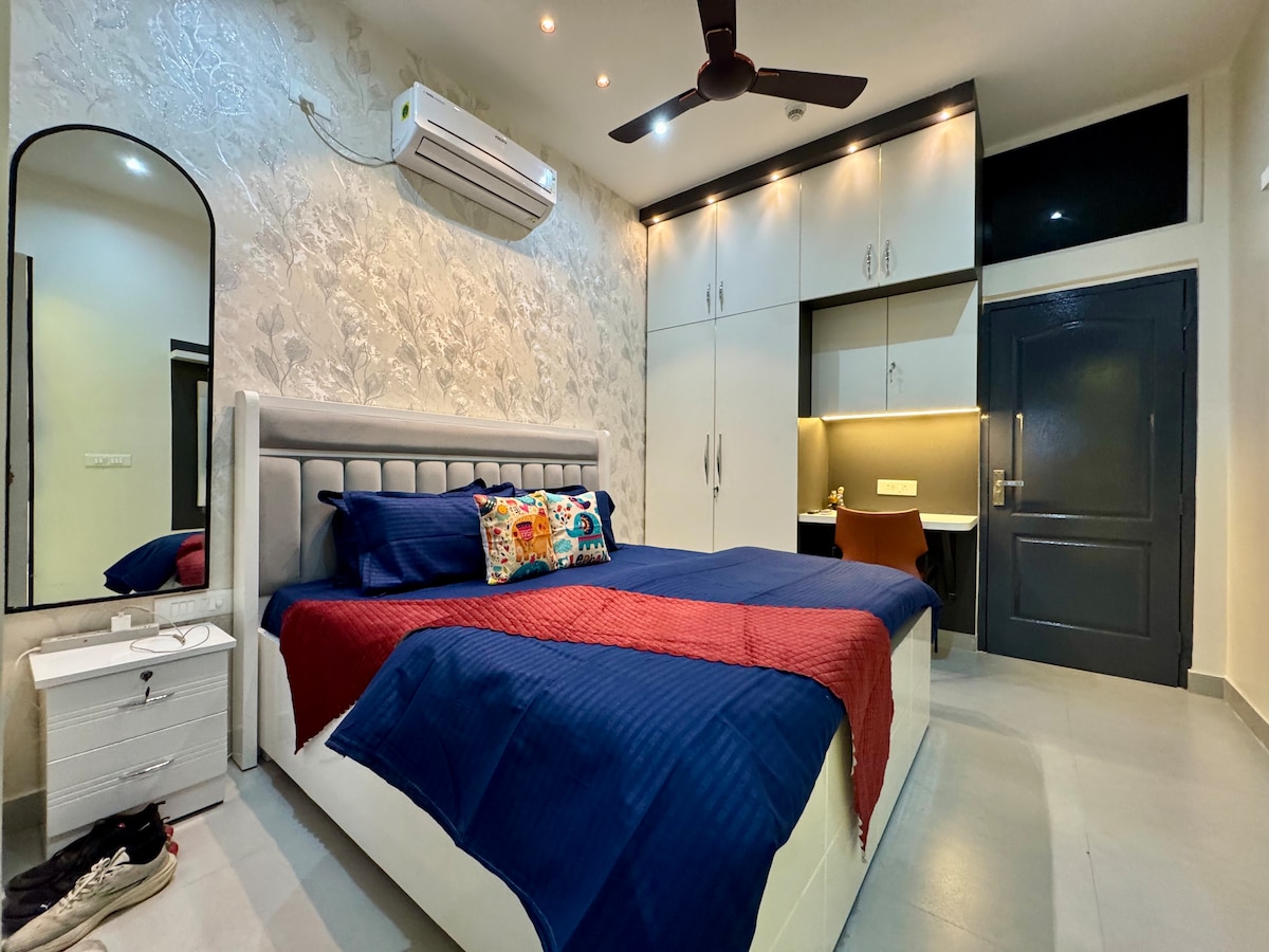Te damos la bienvenida a nuestro elegante Airbnb 3BHK, totalmente amueblado para una estancia cómoda. Con una decoración moderna, ropa de cama lujosa y una cocina totalmente equipada, es perfecta para familias, grupos o viajeros de negocios. Disfruta de wifi de alta velocidad, TV inteligente y balcón privado con hermosas vistas. Ubicada cerca de las principales atracciones, tiendas y restaurantes, nuestra casa ofrece comodidad y relajación. Ya sea que estés aquí por trabajo o por placer, nuestro acogedor espacio garantiza una estancia inolvidable.