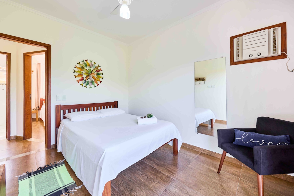 Casa 02, se encuentra en un condominio con 04 casas (Recanto do Jabaquara). Tenemos wifi y Sky. Ofrecemos ropa de cama, mantas, toallas de baño (todas limpias), papel higiénico y jabón. No reemplazamos el papel higiénico. Las habitaciones están equipadas con ventiladores de techo y aire, así como gabinetes, espejos y cortinas opacas. Cocina equipada con utensilios, espacio con barbacoa y ducha de agua dulce y un lavadero. 1 auto en nuestro garaje. Sofá cama en la sala de estar, pudiendo dormir 1 persona.