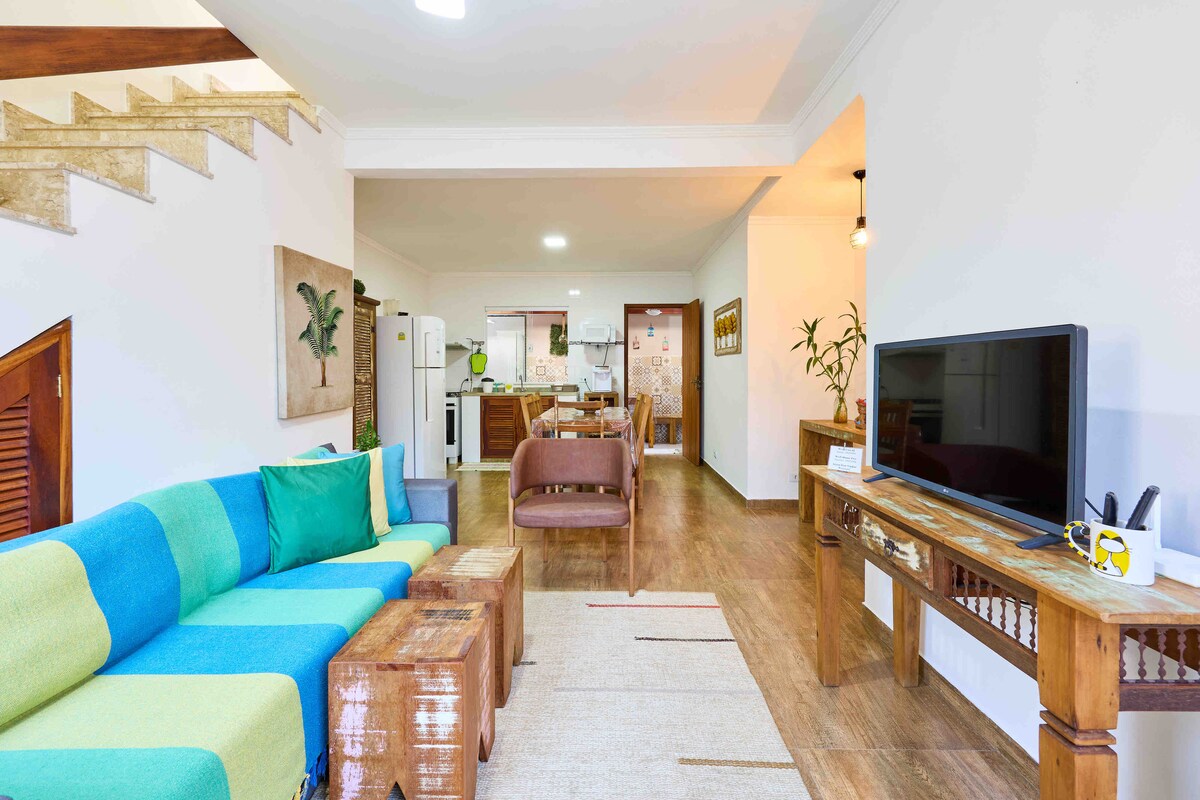 La casa es un entresuelo y se encuentra en la famosa calle del río, a 5 minutos a pie del Cente Histórico. Situada en un tranquilo pueblo de chalets en el distrito temprano de Cabore, entre dos hoteles: Pousada da Condessa y Provence, la calle tiene un carril bici y está cerca de restaurantes, vida nocturna, a 500 metros de la playa de Pontal y a 1 km de la playa de Jabaquara. Tiene un jardín interior abierto y también una parte cubierta. Con vistas al verde, una ducha en la terraza y el estacionamiento en el interior