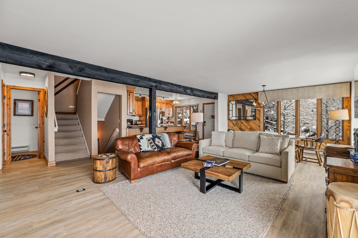 Ubicada en un entorno de montaña ideal, esta impresionante casa adosada tiene todo lo que buscas. Bañera de hidromasaje privada, espacio para amigos, aire acondicionado y fácil acceso a todo lo que el centro vacacional tiene para ofrecer. Puedes esquiar/andar en bicicleta/caminar directamente por la puerta trasera y hacia la montaña. La vida silvestre abunda en este lugar sereno. Esta casa ha sido recientemente sometida a una renovación completa y una ampliación (completada en el verano de 2025). ¡Estamos encantados de hospedarte!